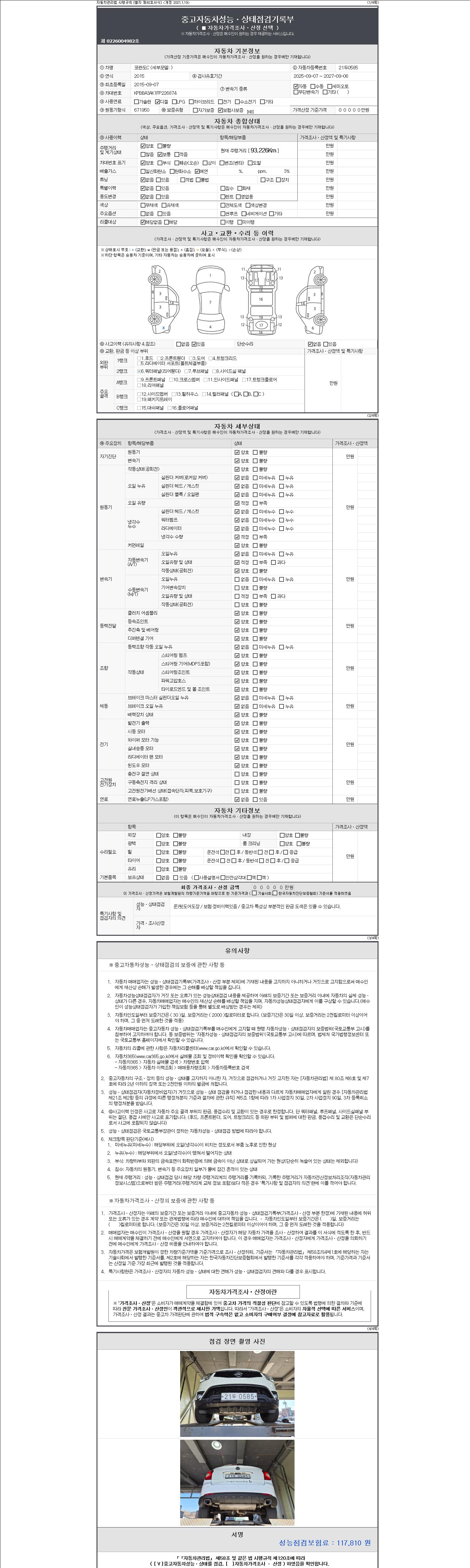 | 주행거리 | 93,226 km | 차량번호 | 21두0585 | 사고유무 | 성능기록부 참조 | 제시번호 | 제 2147483647 호 |