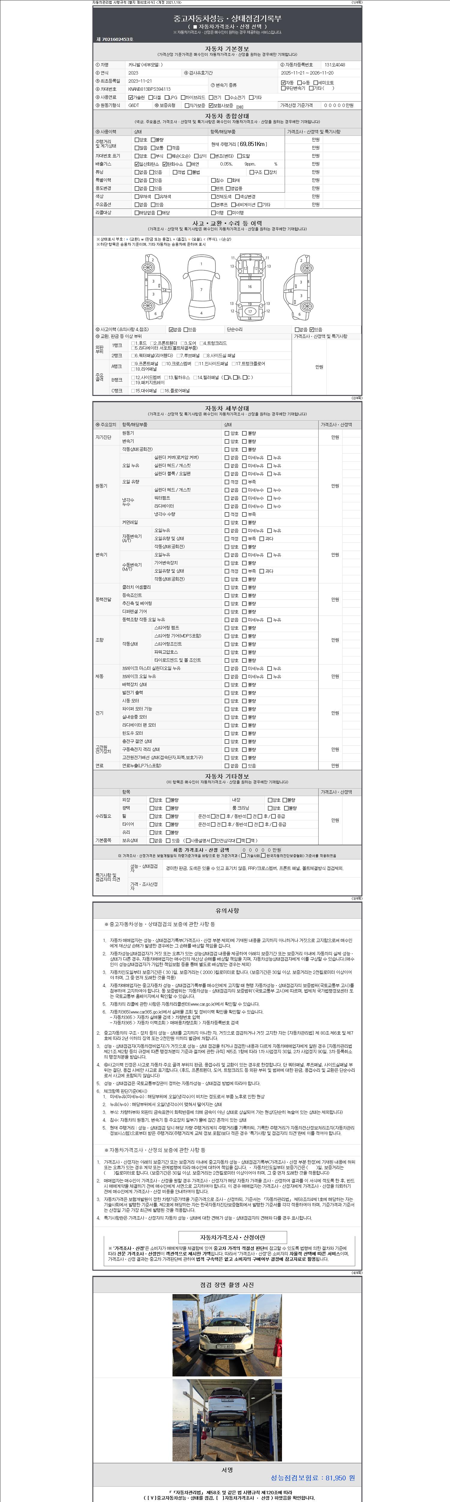 - 2. 차량 등록증이나 성능점검지 등을 상담자에게 요청및 확인하시고 사전에 미리 점검 하시기를 권유드립니다.