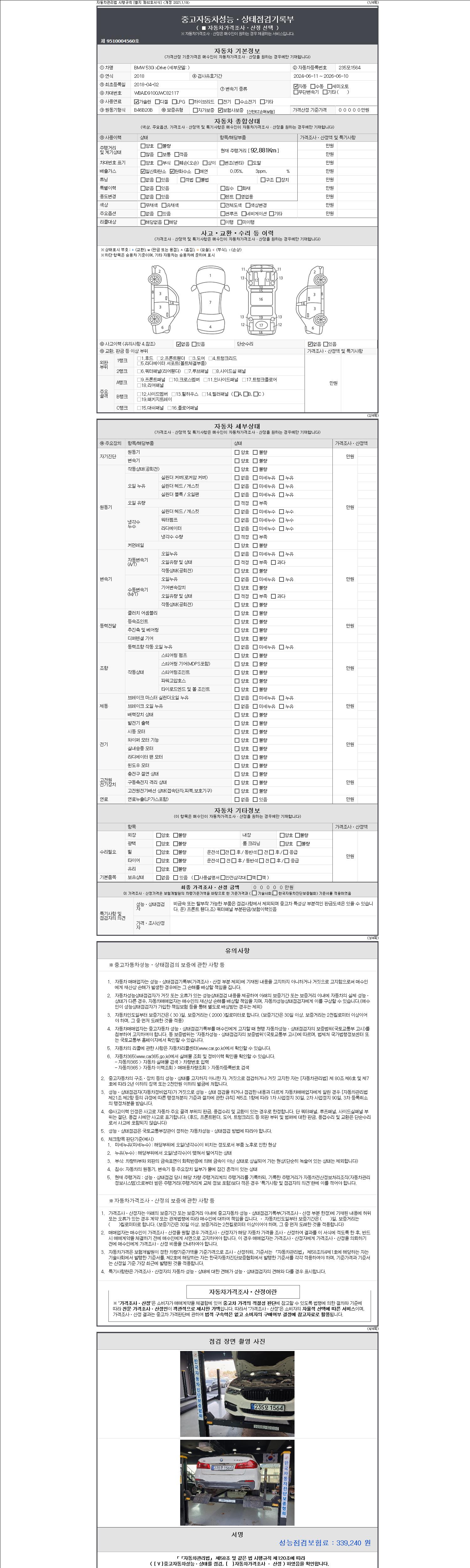 - 사고유무 : 성능기록부 참조