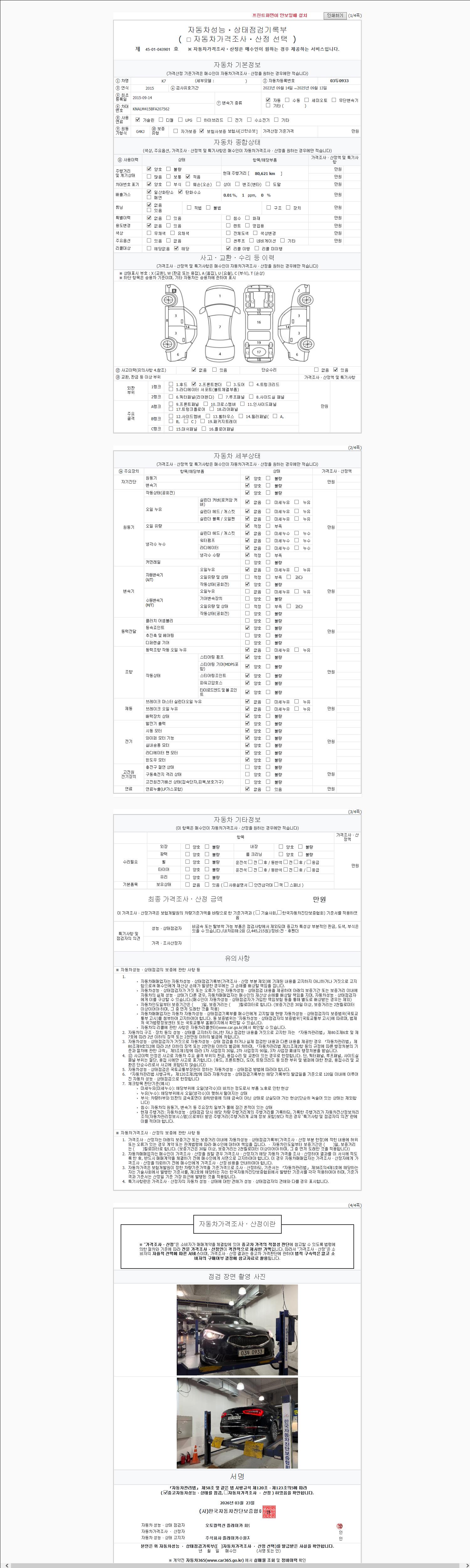 - 2. 차량 등록증이나 성능점검지 등을 상담자에게 요청및 확인하시고 사전에 미리 점검 하시기를 권유드립니다.