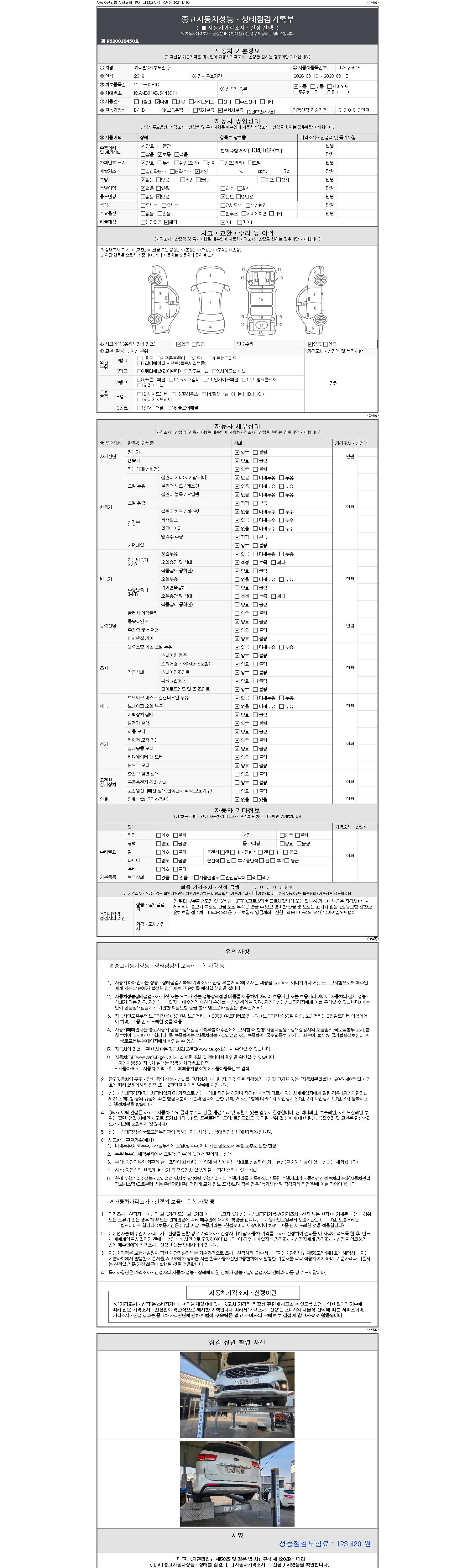 | 주행거리 | 134,162 km | 차량번호 | 175구5615 | 사고유무 | 성능기록부 참조 | 제시번호 | 제 2147483647 호 |
