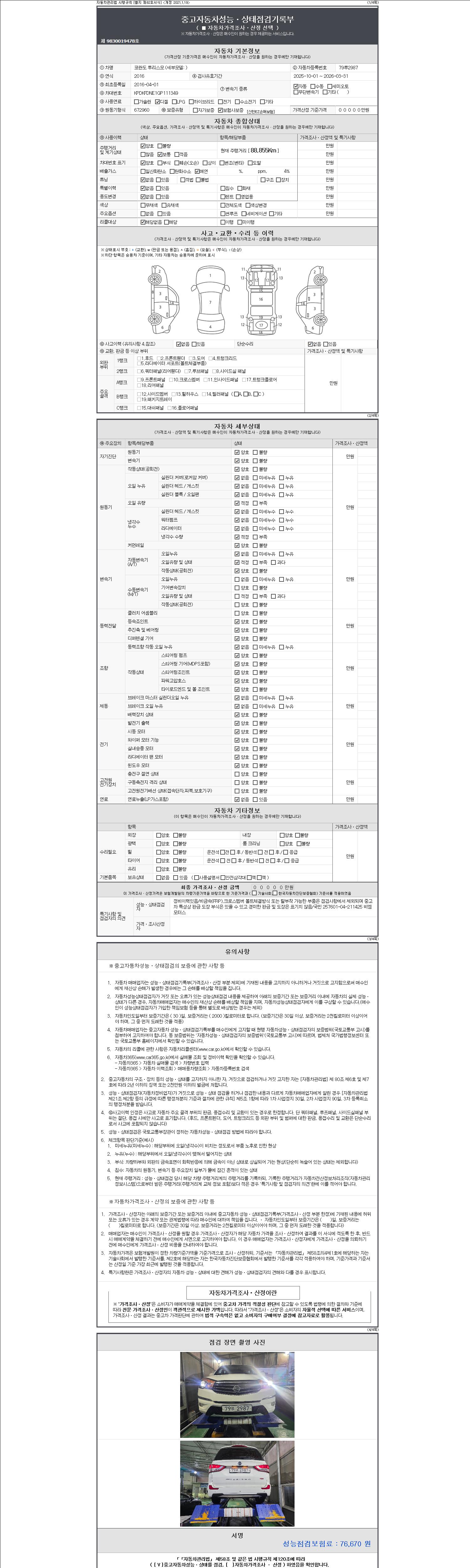 - 2. 차량 등록증이나 성능점검지 등을 상담자에게 요청및 확인하시고 사전에 미리 점검 하시기를 권유드립니다.