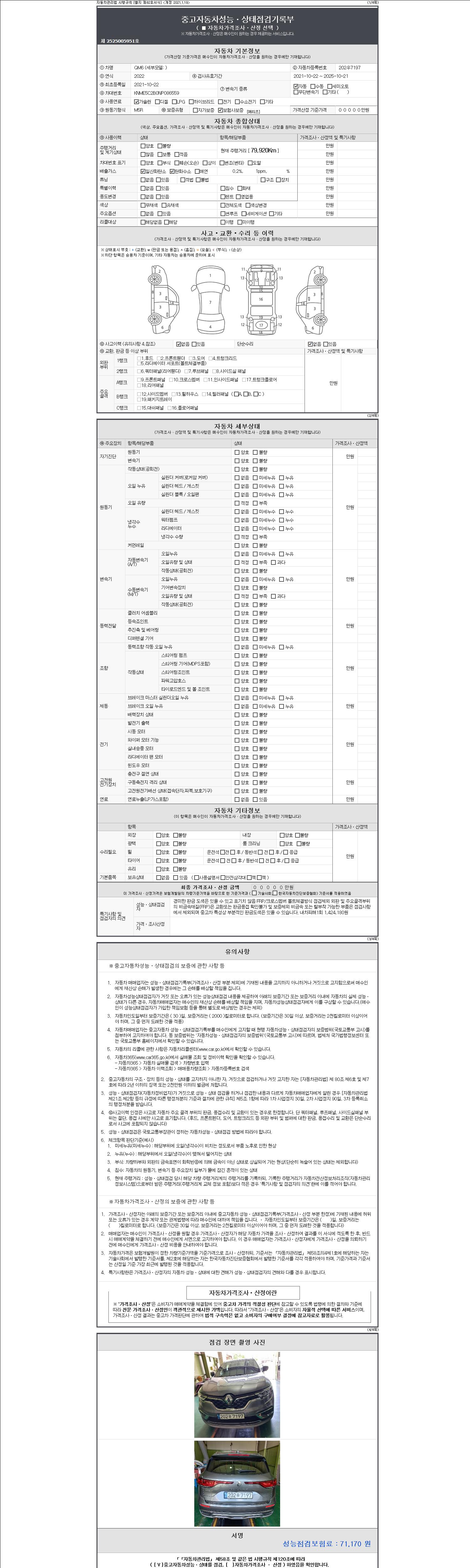 - 2. 차량 등록증이나 성능점검지 등을 상담자에게 요청및 확인하시고 사전에 미리 점검 하시기를 권유드립니다.