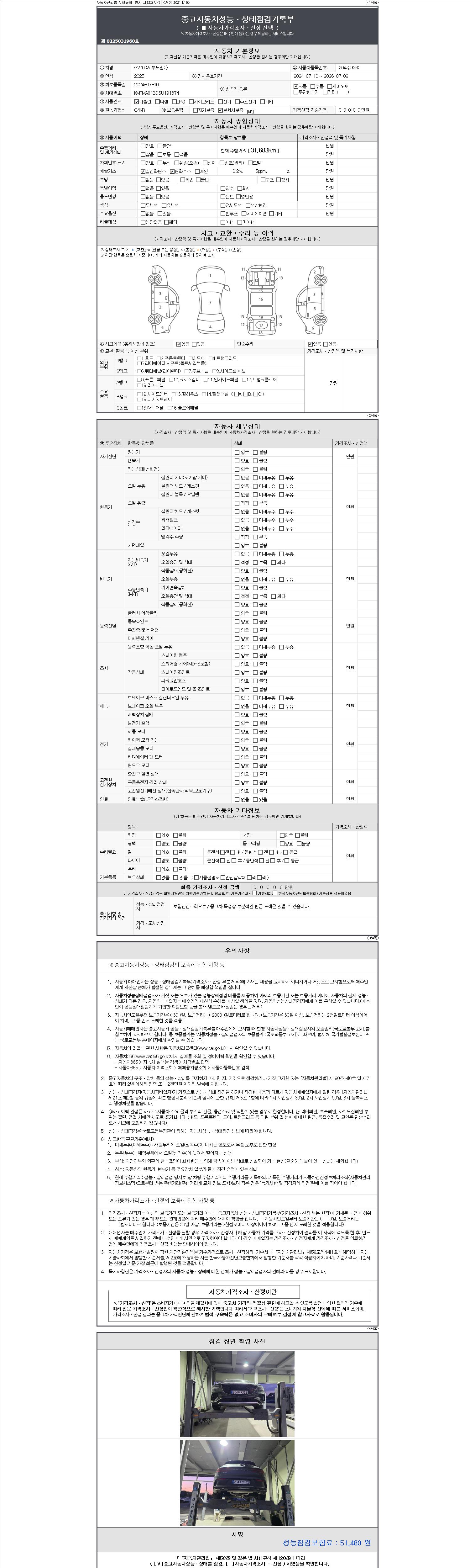 - 사고유무 : 성능기록부 참조