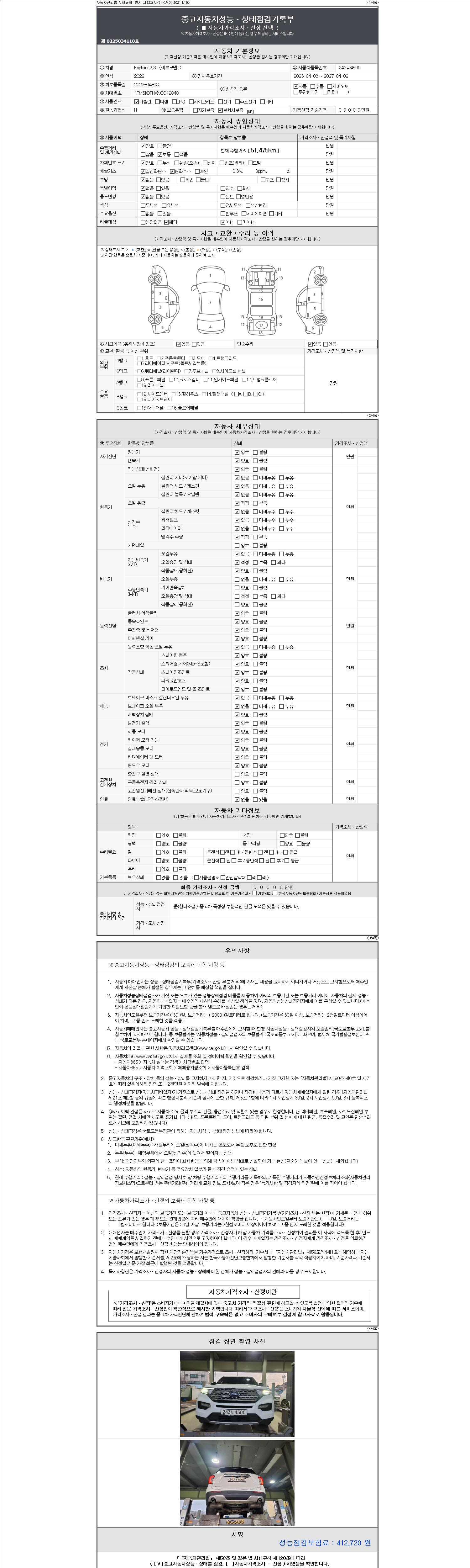 | 주행거리 | 51,475 km | 차량번호 | 243나4500 | 사고유무 | 성능기록부 참조 | 제시번호 | 제 2147483647 호 |
