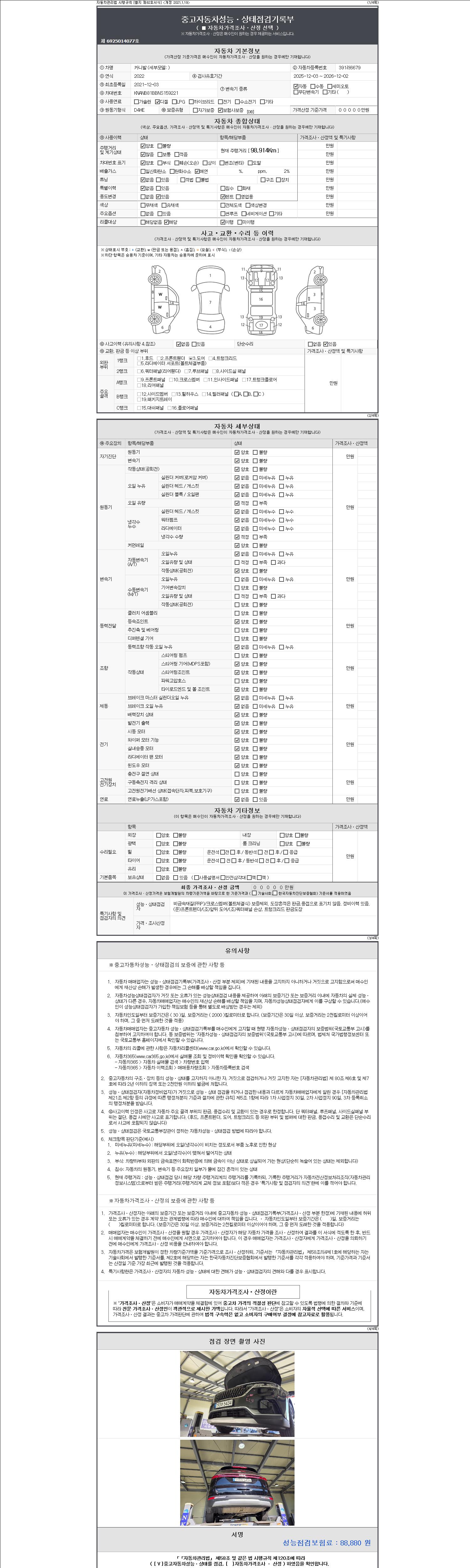 • 2. 차량 등록증이나 성능점검지 등을 상담자에게 요청및 확인하시고 사전에 미리 점검 하시기를 권유드립니다.