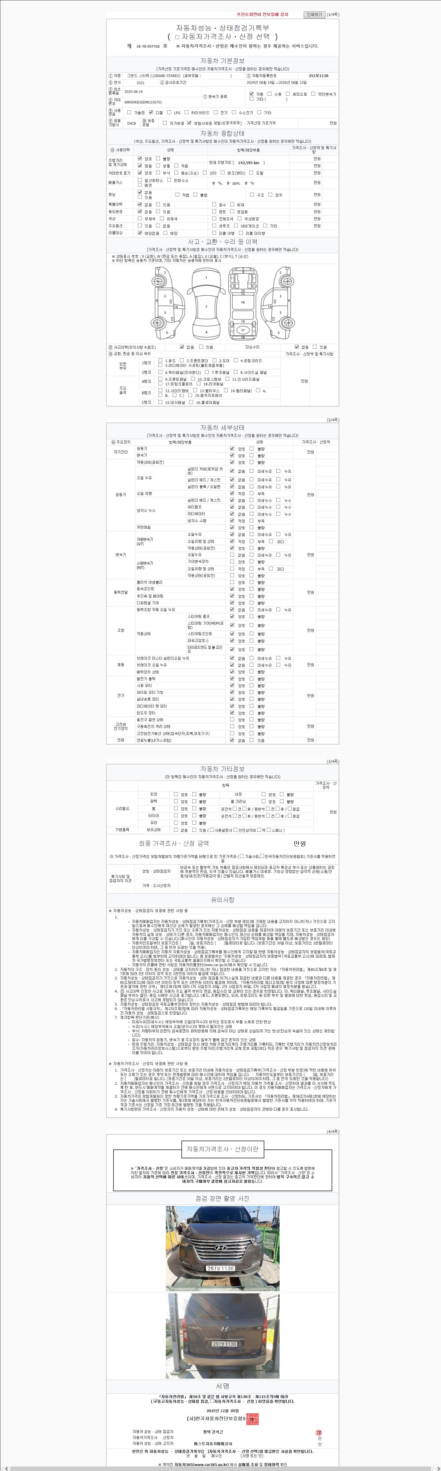 | 주행거리 | 142,595 km | 차량번호 | 251보1130 | 사고유무 | 성능기록부 참조 | 제시번호 | 제 2147483647 호 |