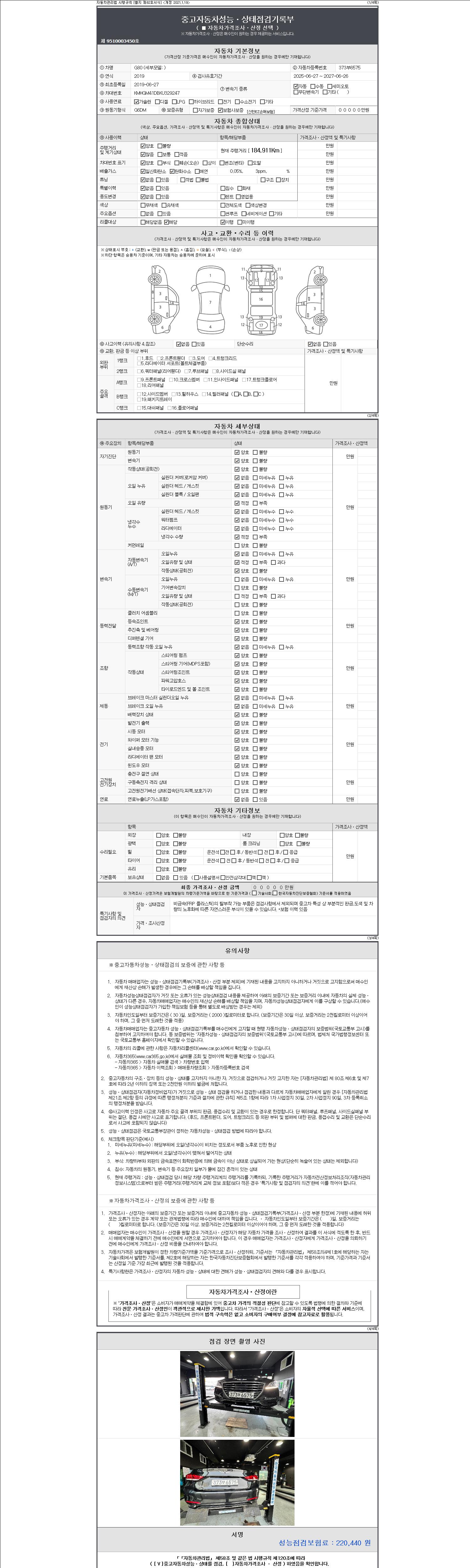 - 사고유무 : 성능기록부 참조