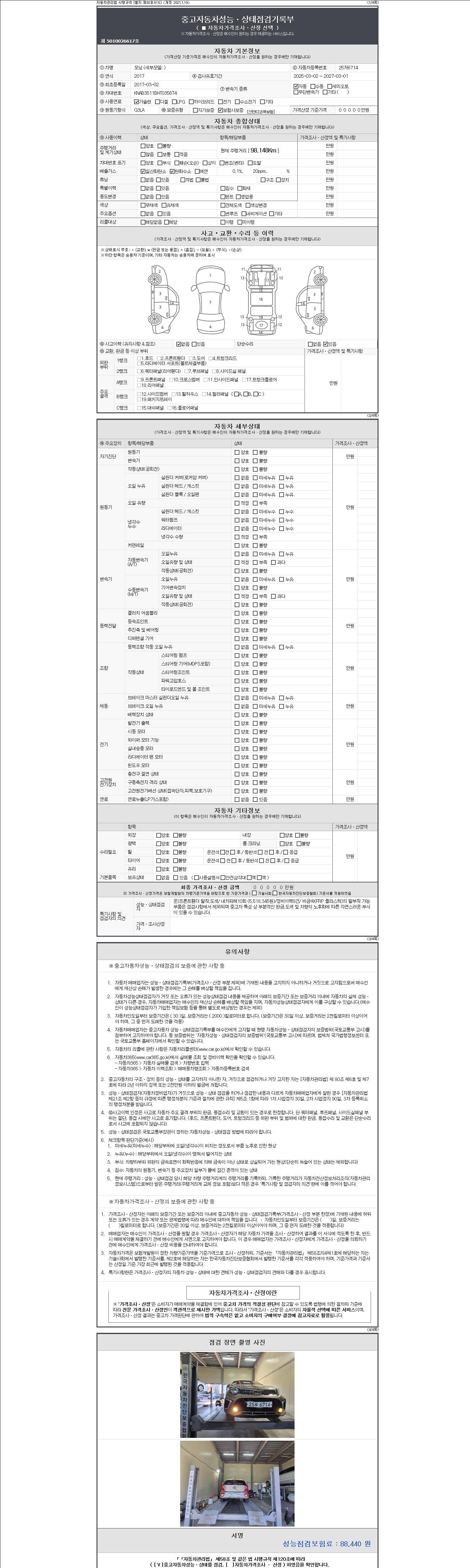 - 2. 차량 등록증이나 성능점검지 등을 상담자에게 요청및 확인하시고 사전에 미리 점검 하시기를 권유드립니다.