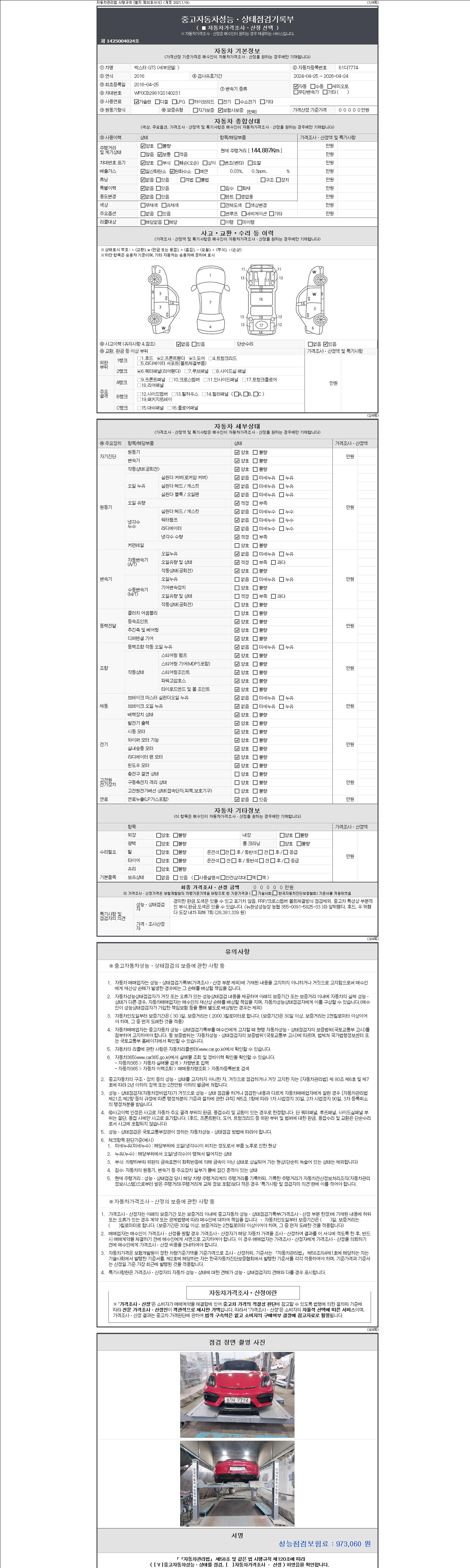 주행거리 144,887 km 차량번호 61다7774 사고유무 성능기록부 참조 제시번호 제 2147483647 호