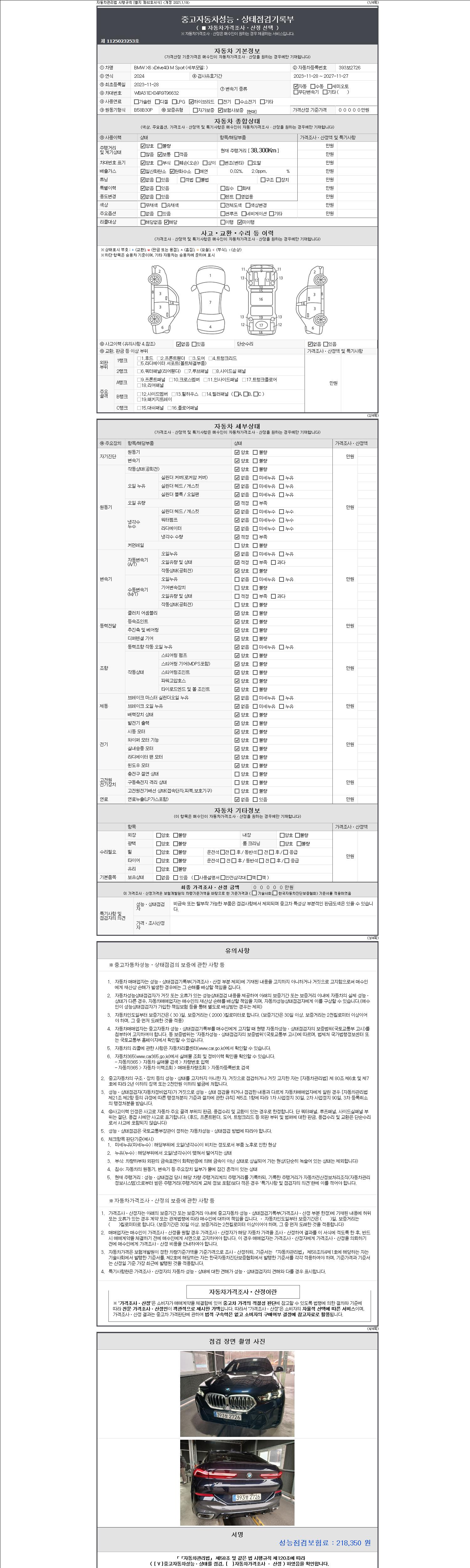 | 주행거리 | 38,300 km | 차량번호 | 393보2726 | 사고유무 | 성능기록부 참조 | 제시번호 | 제 2147483647 호 |