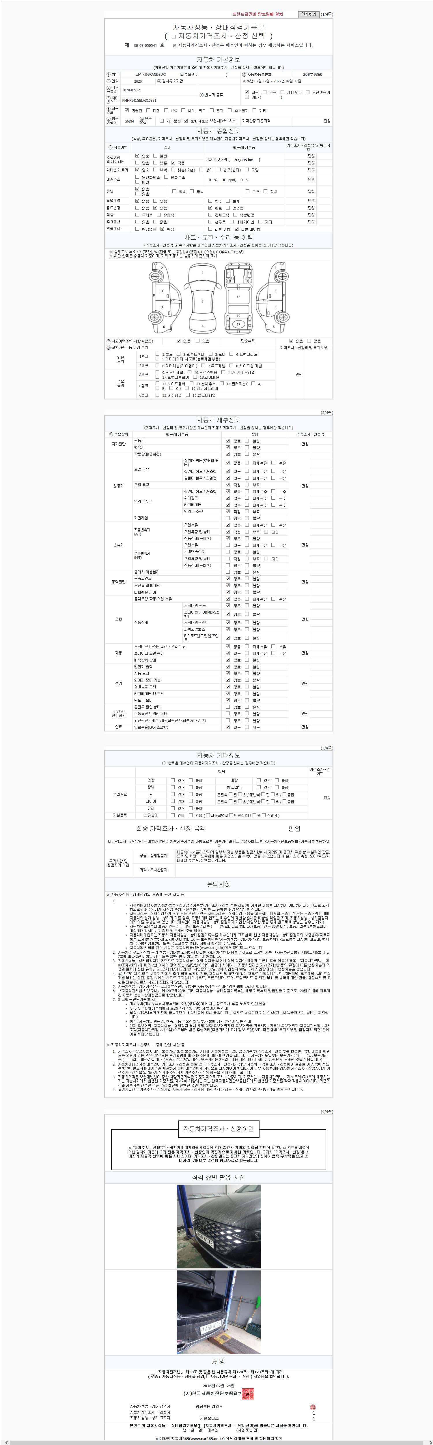 - 사고유무 : 성능기록부 참조