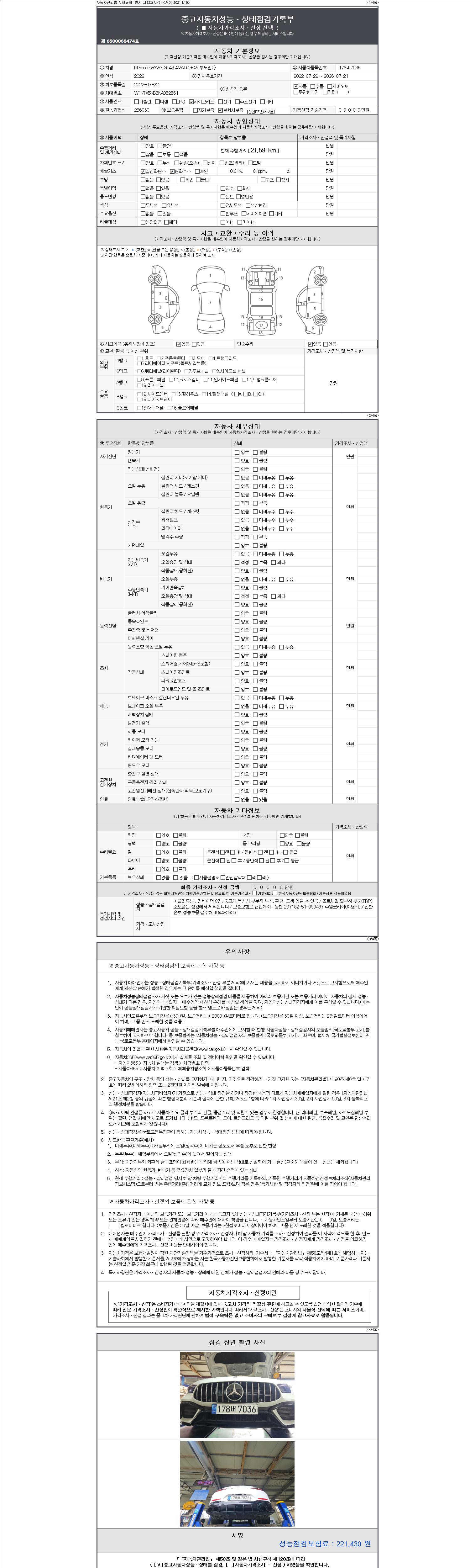 | 주행거리 | 21,591 km | 차량번호 | 178버7036 | 사고유무 | 성능기록부 참조 | 제시번호 | 제 2147483647 호 |