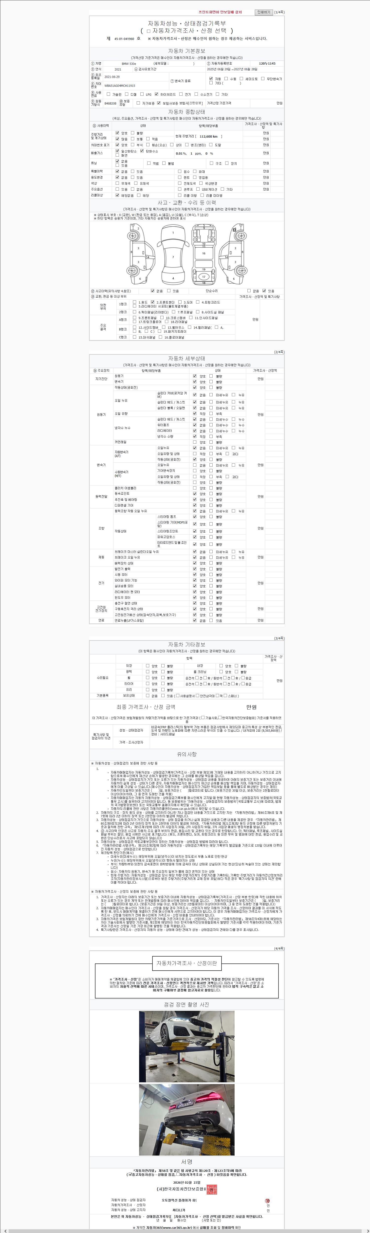 | 주행거리 | 112,600 km | 차량번호 | 120누1145 | 사고유무 | 성능기록부 참조 | 제시번호 | 제 2147483647 호 |