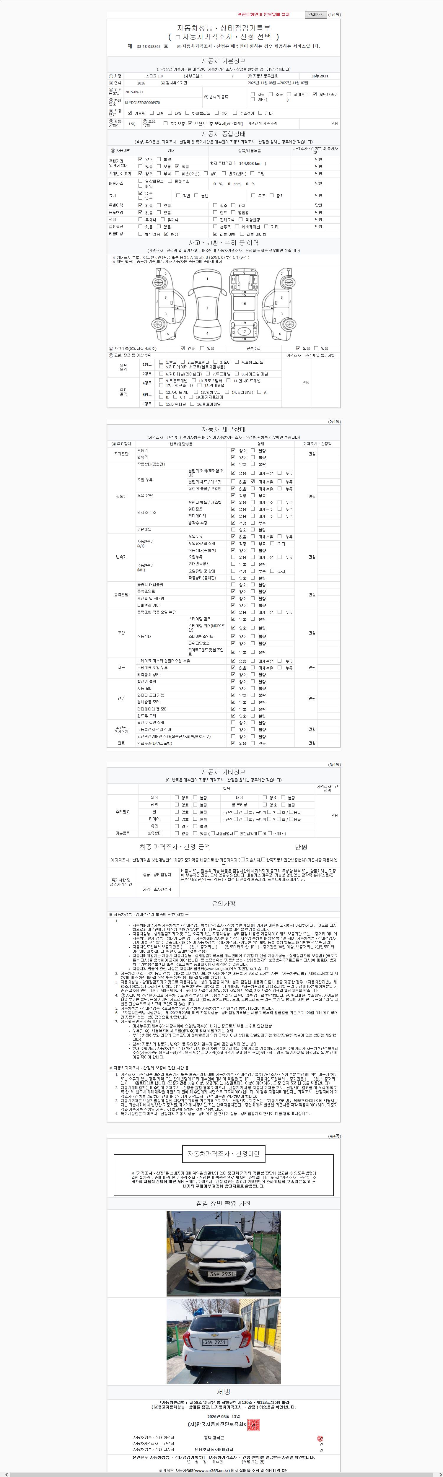| 주행거리 | 144,903 km | 차량번호 | 36누2931 | 사고유무 | 성능기록부 참조 | 제시번호 | 제 2147483647 호 |