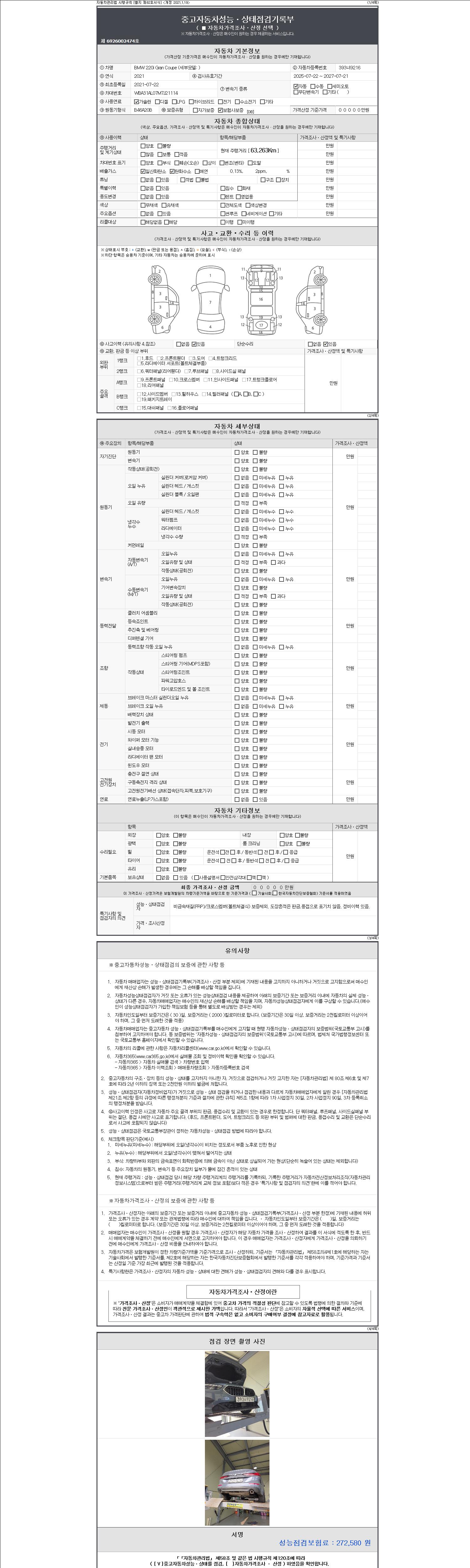 - 2. 차량 등록증이나 성능점검지 등을 상담자에게 요청및 확인하시고 사전에 미리 점검 하시기를 권유드립니다.