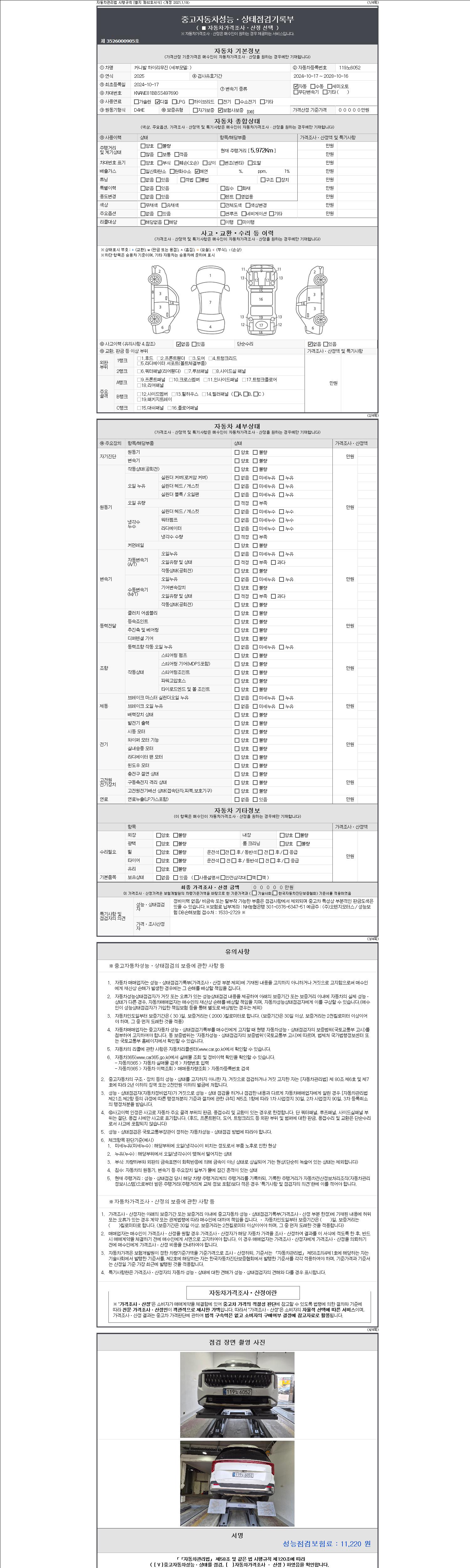 - 사고유무 : 성능기록부 참조