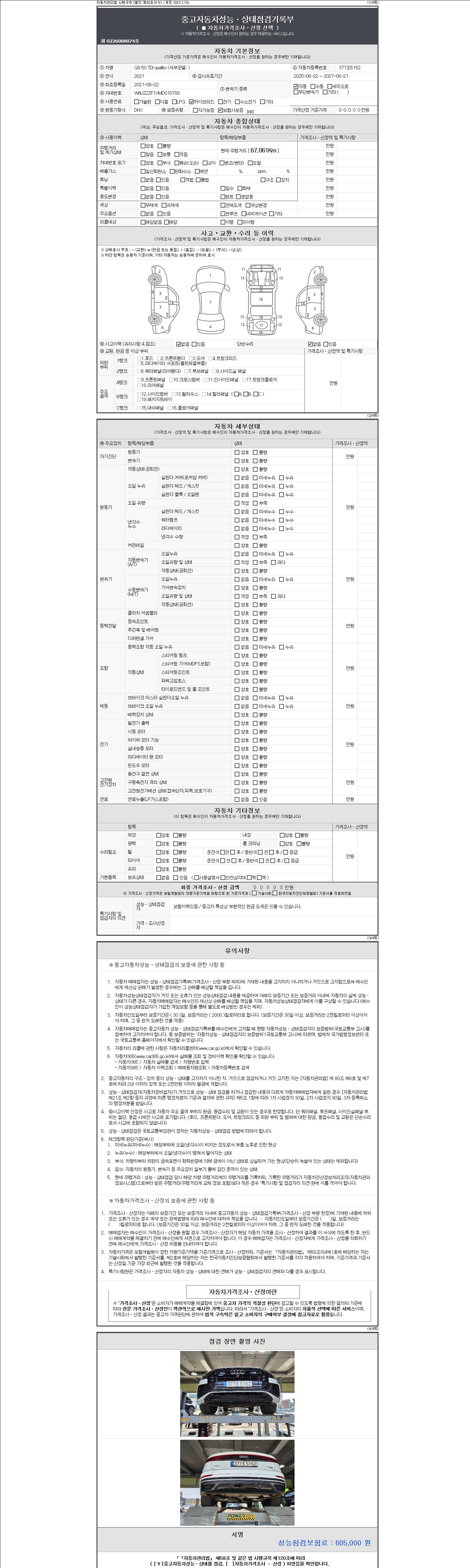 - 2. 차량 등록증이나 성능점검지 등을 상담자에게 요청및 확인하시고 사전에 미리 점검 하시기를 권유드립니다.
