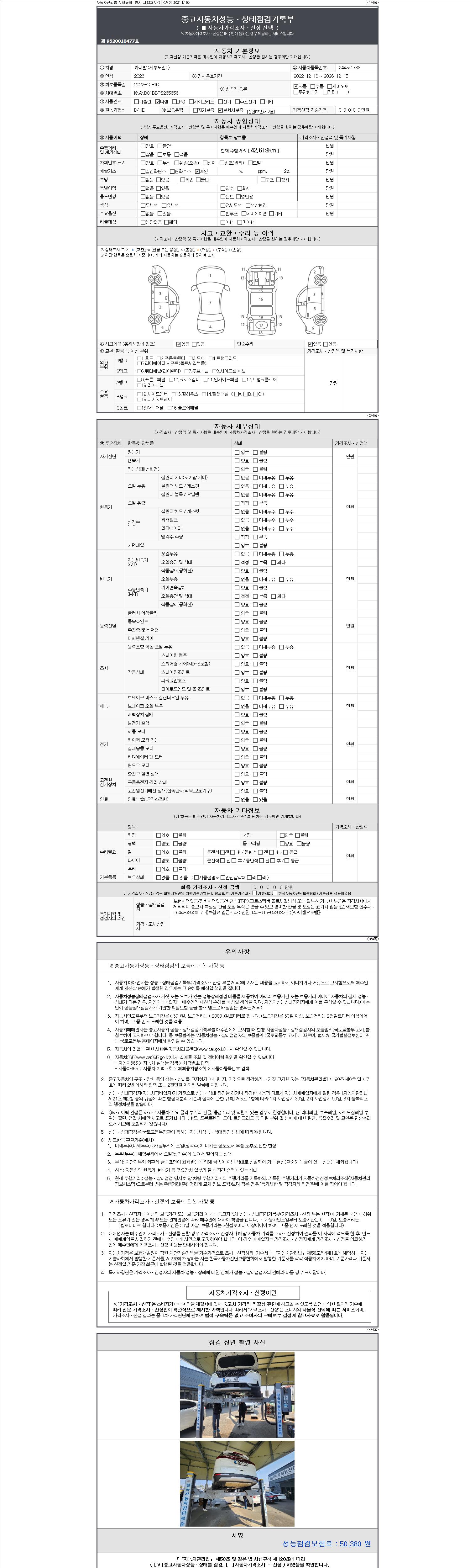 - 2. 차량 등록증이나 성능점검지 등을 상담자에게 요청및 확인하시고 사전에 미리 점검 하시기를 권유드립니다.