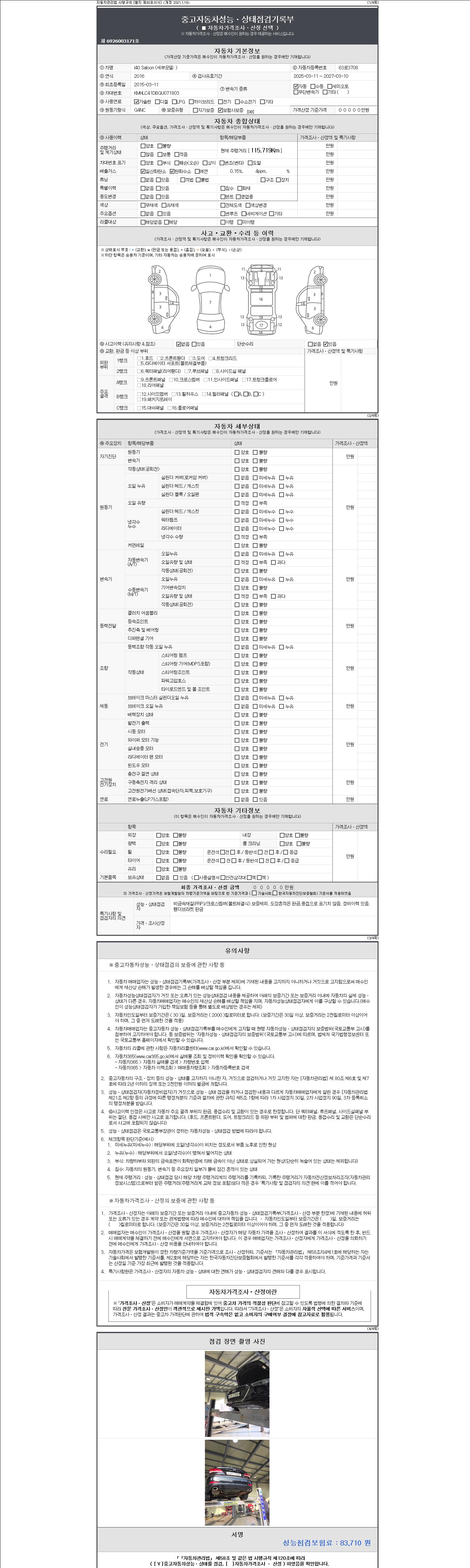 - 사고유무 : 성능기록부 참조