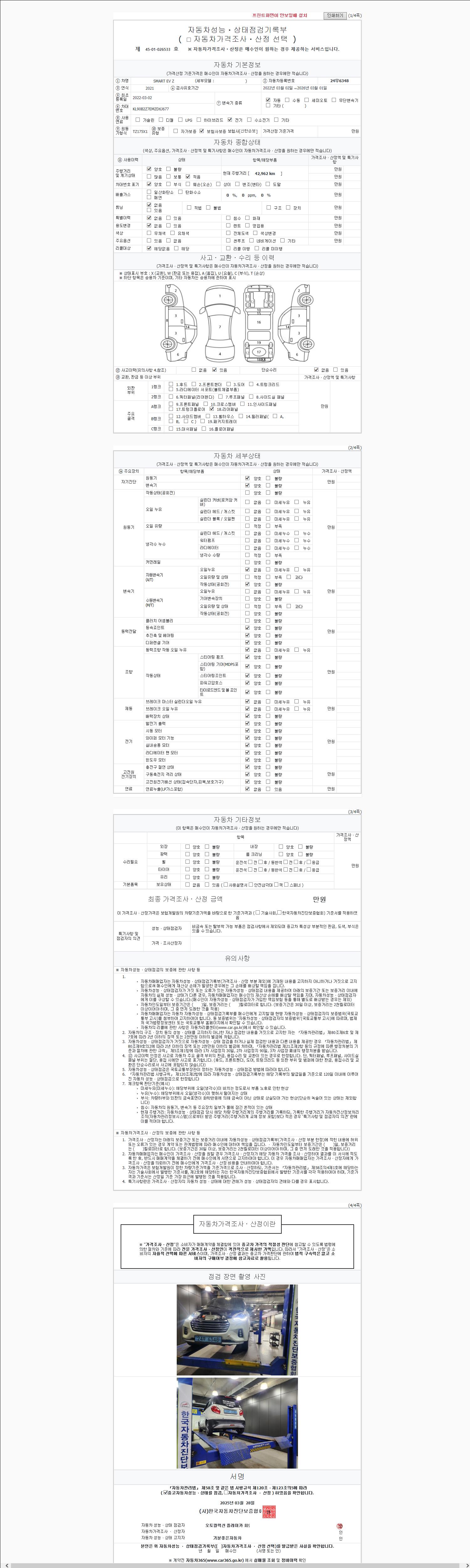 - 사고유무 : 성능기록부 참조