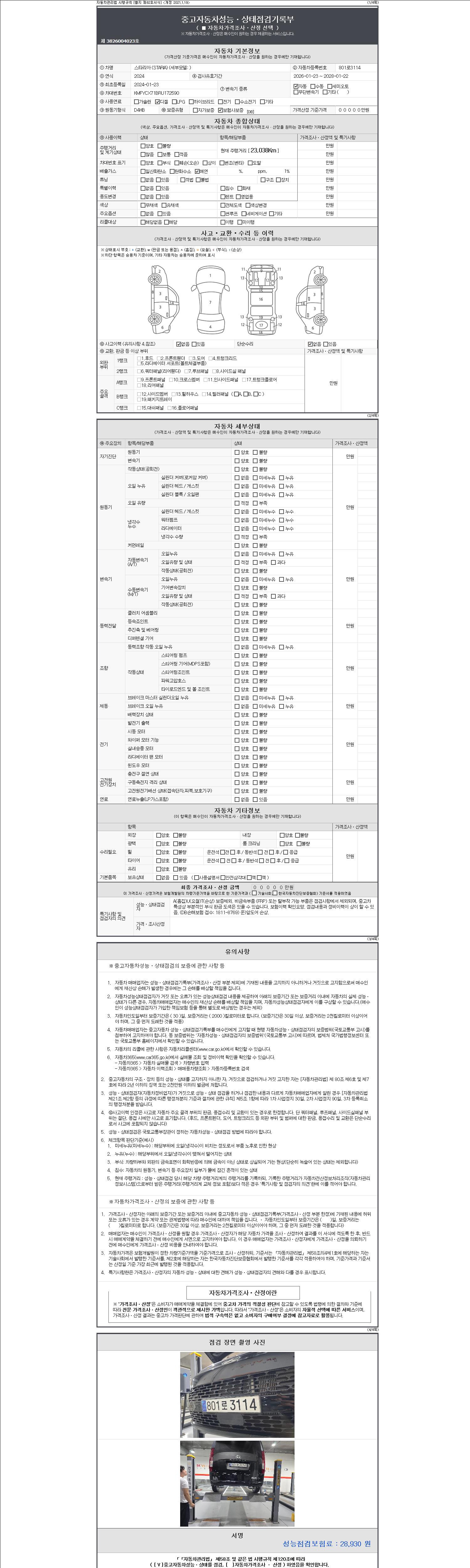 | 주행거리 | 23,038 km | 차량번호 | 801로3114 | 사고유무 | 성능기록부 참조 | 제시번호 | 제 2147483647 호 |