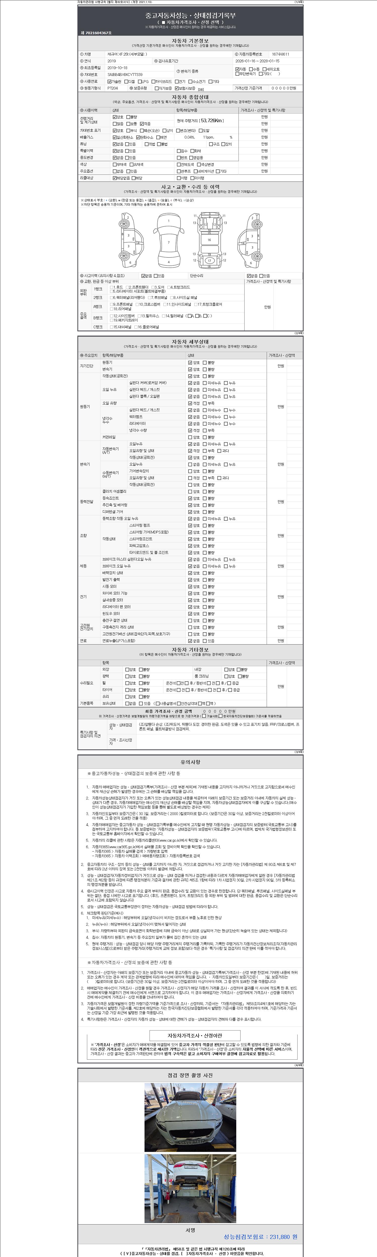 - 사고유무 : 성능기록부 참조