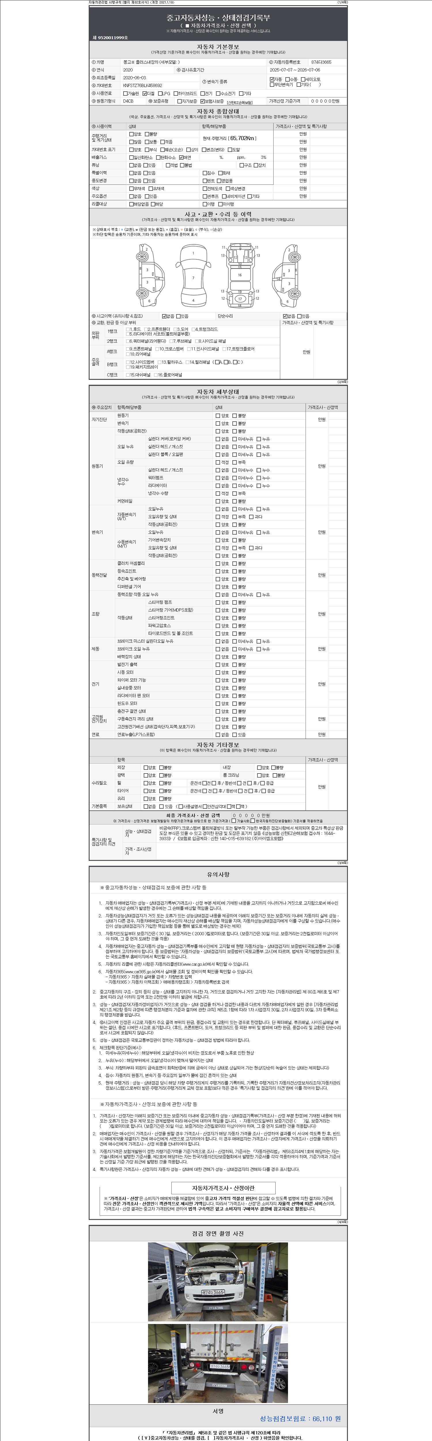 -중고자동차 매매업자를 통해 차량을 구입하실 경우 반드시 "중고자동차 성능, 상태점검 기록부"를 교뷰 받으셔야 하며, 매매업자는 반드시 의무 교부 하여야 압니다.