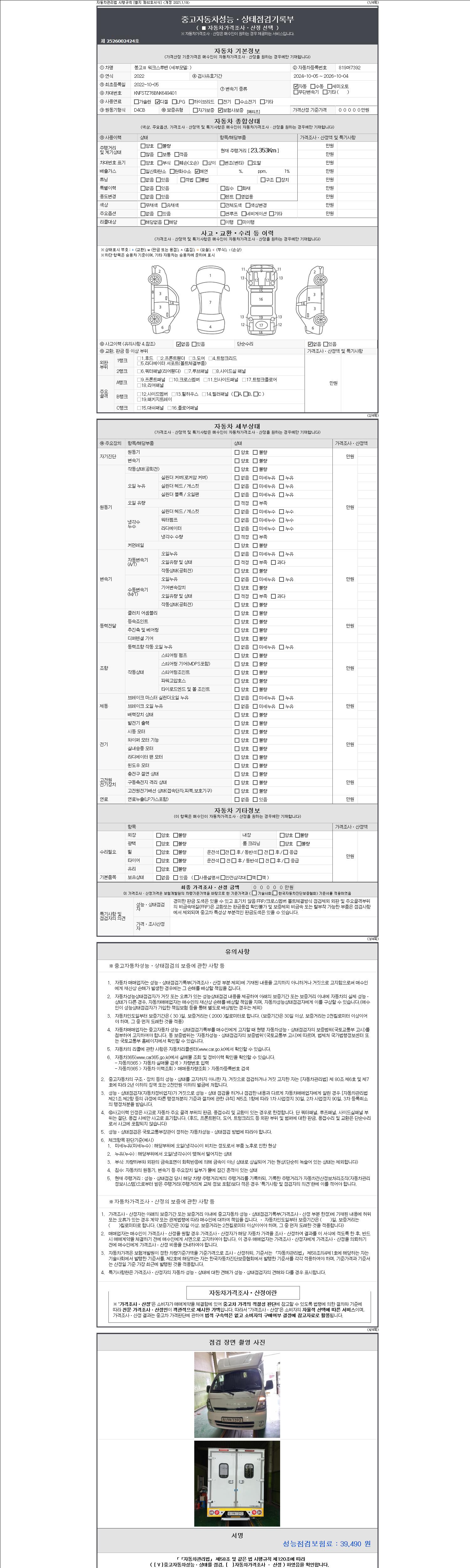 | 주행거리 | 23,200 km | 차량번호 | 819머7392 | 사고유무 | 성능기록부 참조 | 제시번호 | 제 2147483647 호 |
