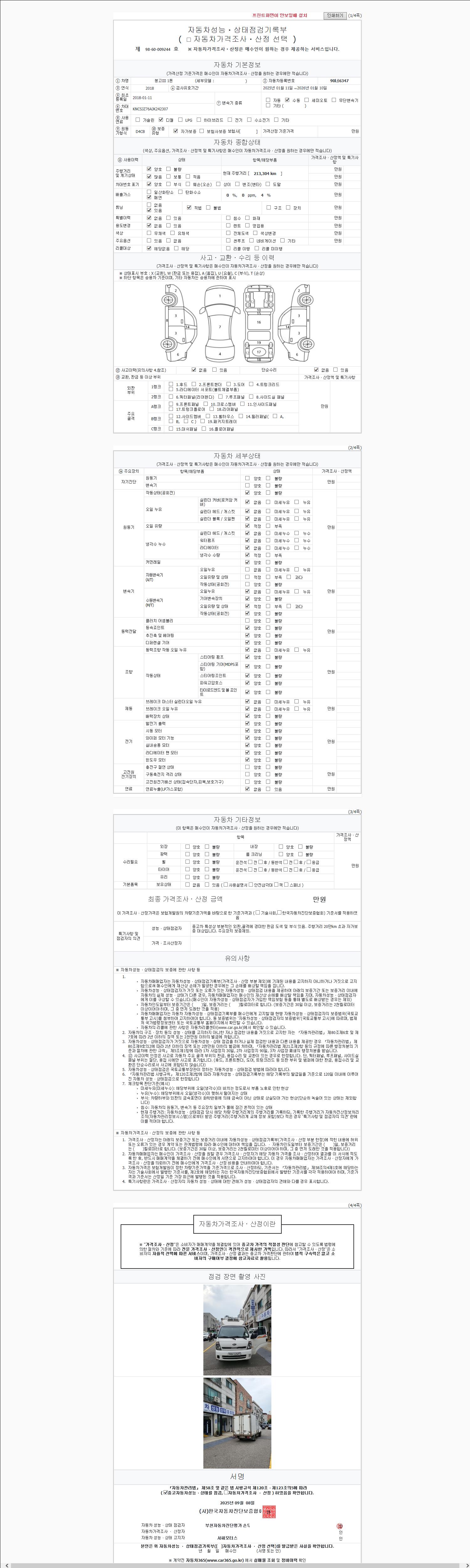 - 2. 차량 등록증이나 성능점검지 등을 상담자에게 요청및 확인하시고 사전에 미리 점검 하시기를 권유드립니다.
