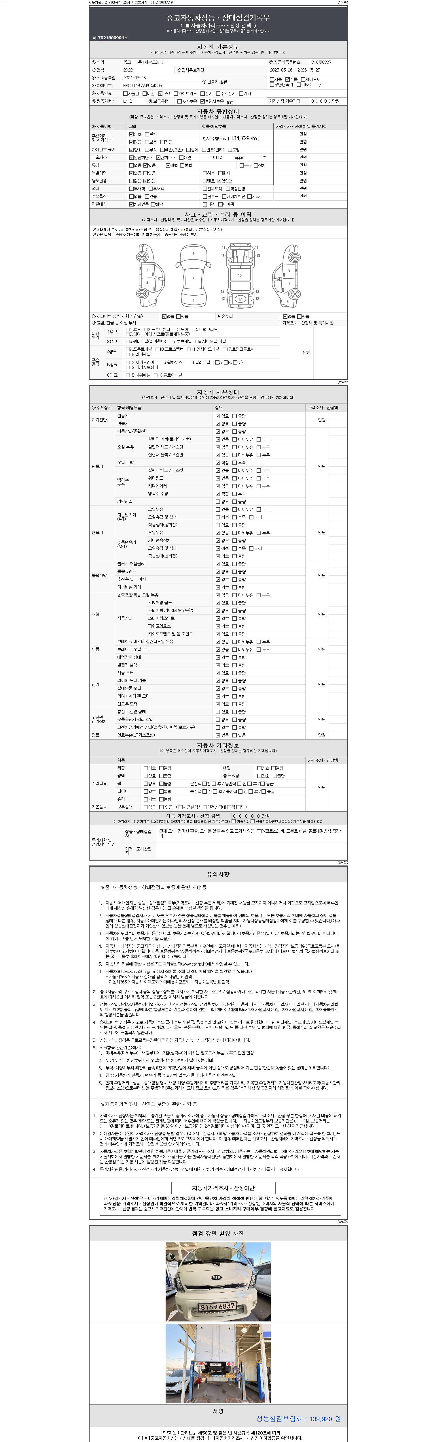 | 주행거리 | 134,706 km | 차량번호 | 816루6837 | 사고유무 | 성능기록부 참조 | 제시번호 | 제 2147483647 호 |