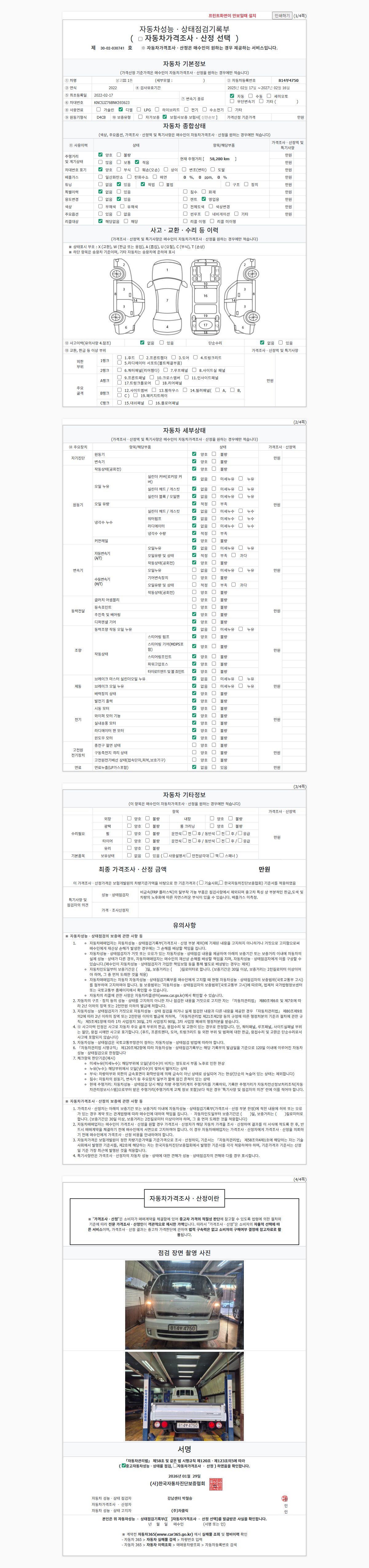 - 2. 차량 등록증이나 성능점검지 등을 상담자에게 요청및 확인하시고 사전에 미리 점검 하시기를 권유드립니다.