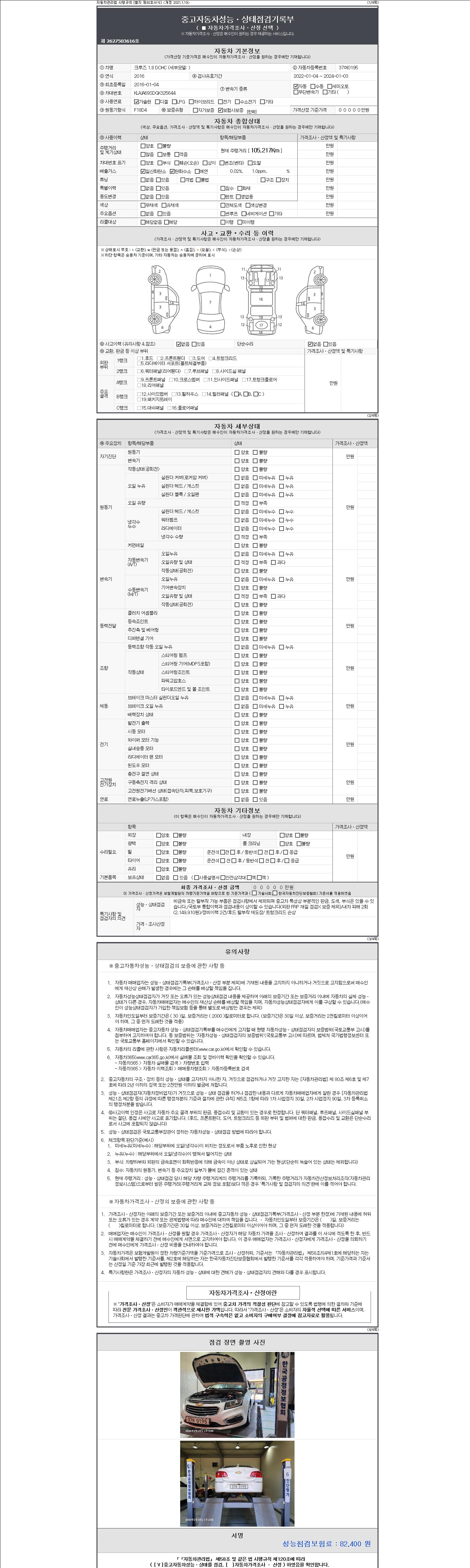| 주행거리 | 105,217 km | 차량번호 | 37머0195 | 사고유무 | 성능기록부 참조 | 제시번호 | 제 2147483647 호 |