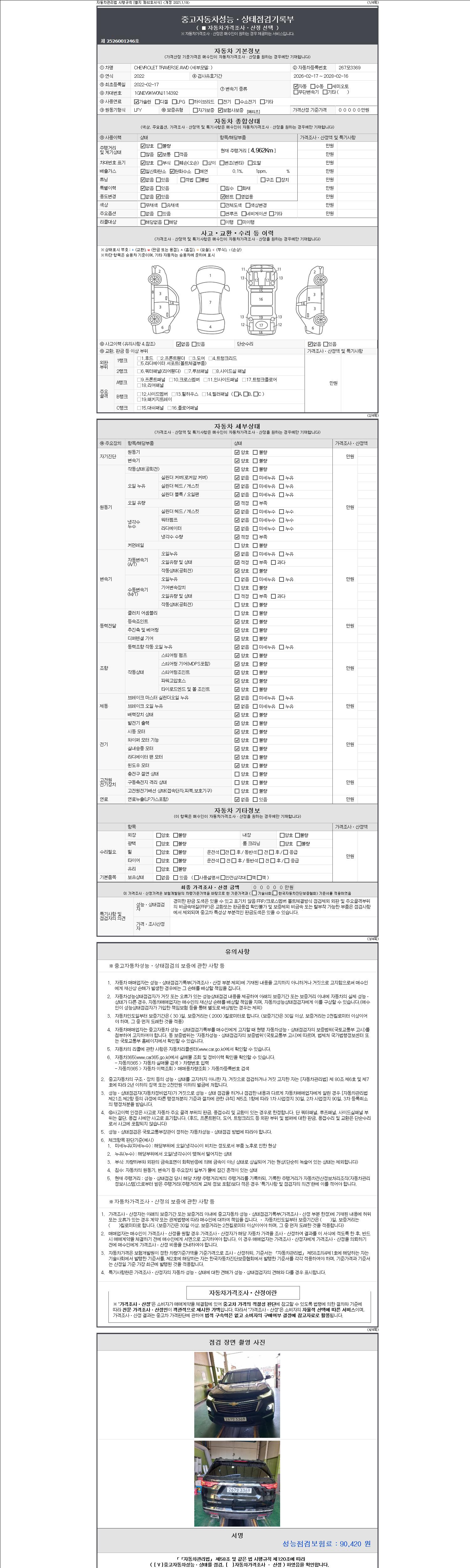 - 2. 차량 등록증이나 성능점검지 등을 상담자에게 요청및 확인하시고 사전에 미리 점검 하시기를 권유드립니다.