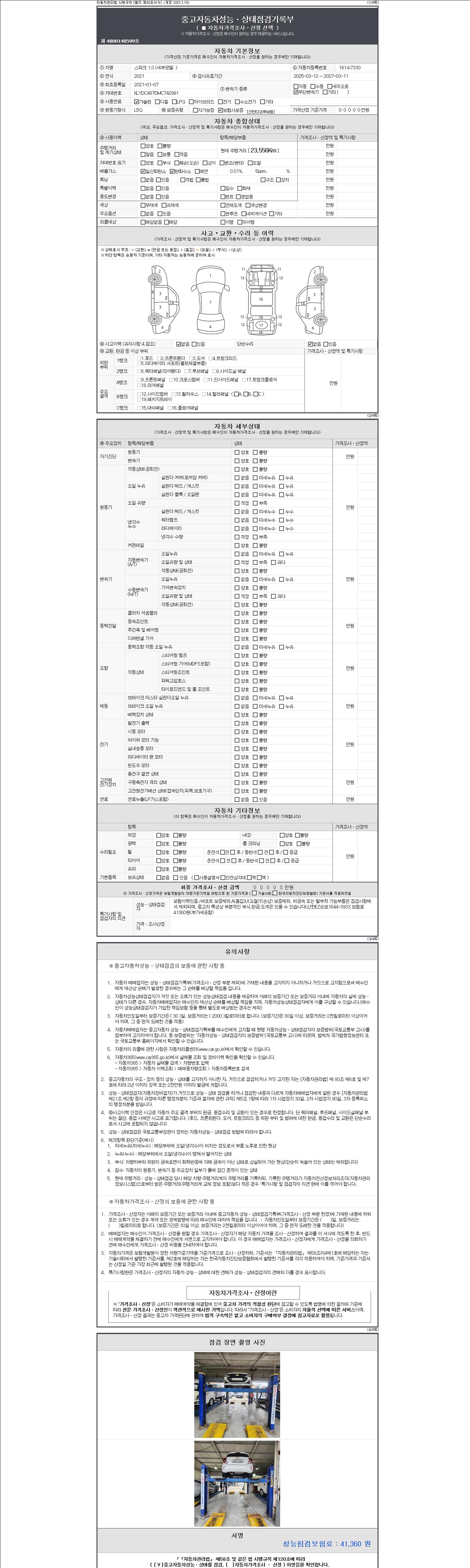 - 2. 차량 등록증이나 성능점검지 등을 상담자에게 요청및 확인하시고 사전에 미리 점검 하시기를 권유드립니다.