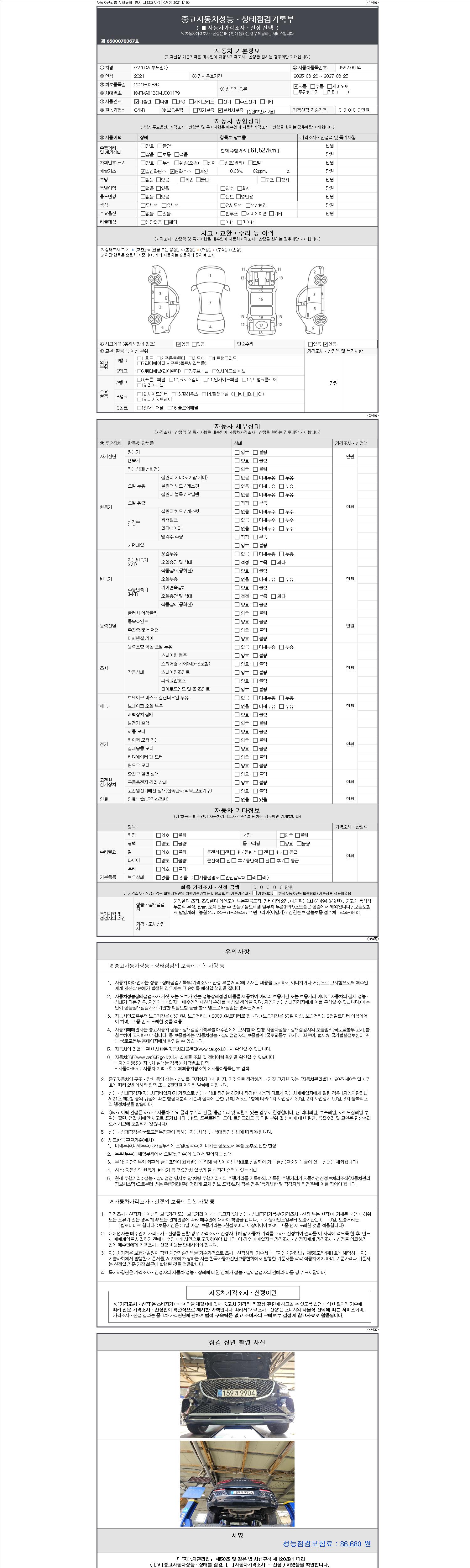 - 2. 차량 등록증이나 성능점검지 등을 상담자에게 요청및 확인하시고 사전에 미리 점검 하시기를 권유드립니다.