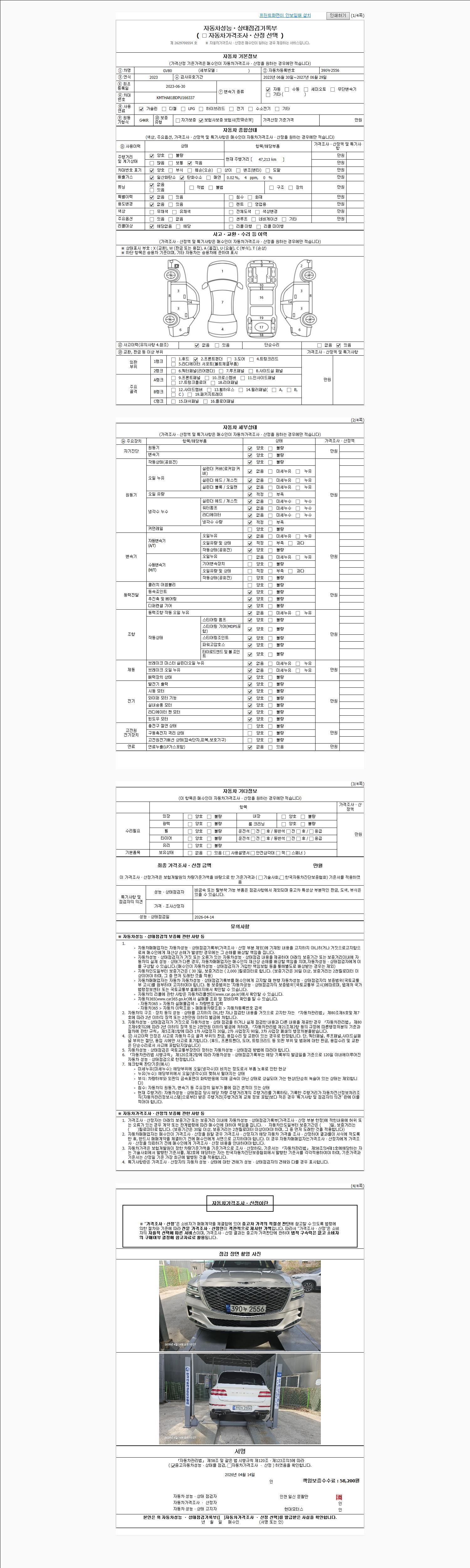 | 주행거리 | 47,213 km | 차량번호 | 390누2556 | 사고유무 | 성능기록부 참조 | 제시번호 | 제 2026019446 호 |