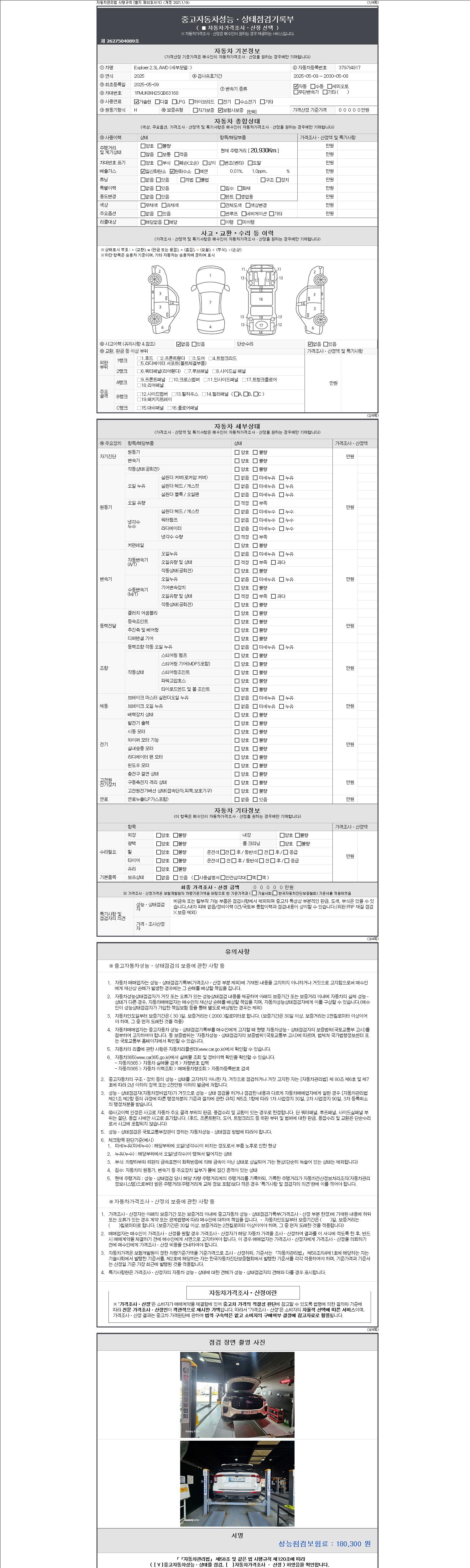 | 주행거리 | 20,915 km | 차량번호 | 379가4917 | 사고유무 | 성능기록부 참조 | 제시번호 | 제 2147483647 호 |
