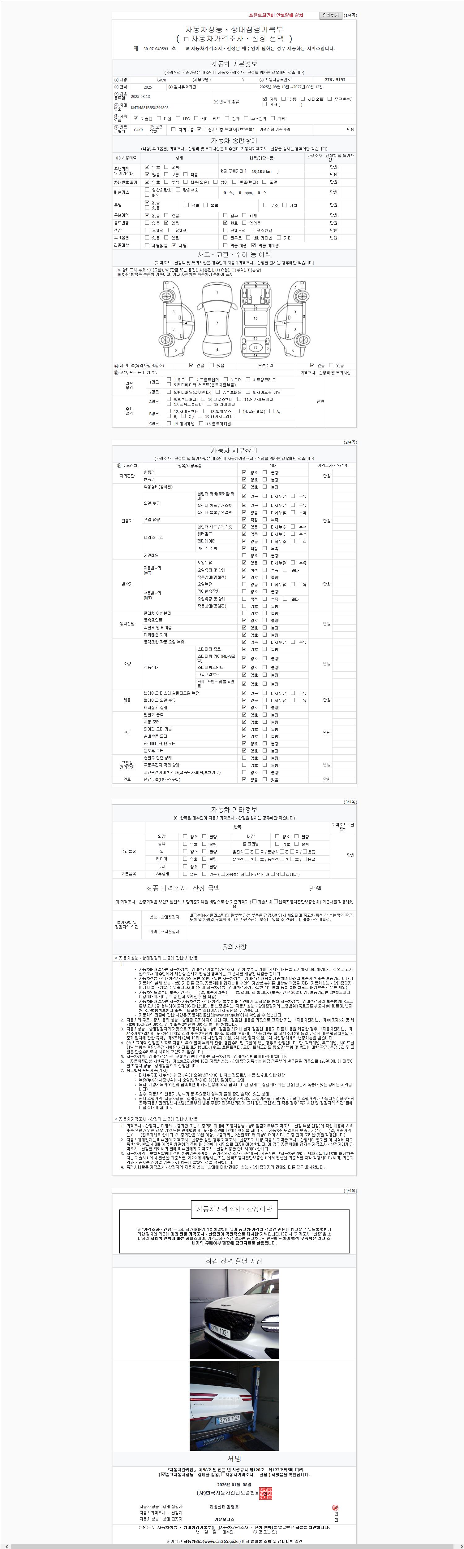 - 2. 차량 등록증이나 성능점검지 등을 상담자에게 요청및 확인하시고 사전에 미리 점검 하시기를 권유드립니다.