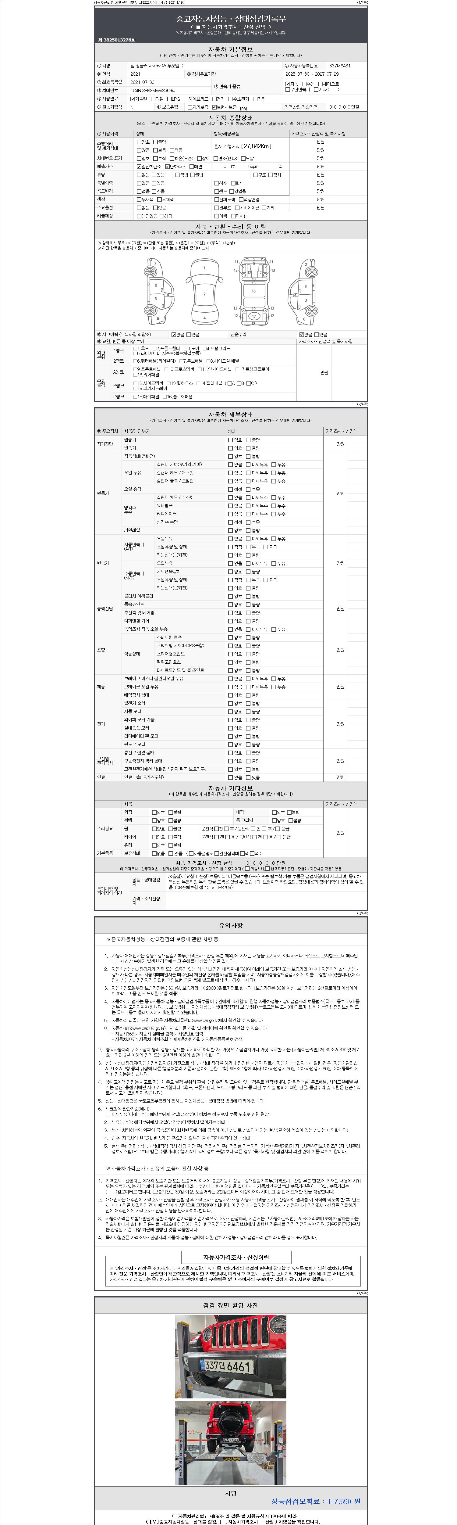 | 주행거리 | 27,842 km | 차량번호 | 337더6461 | 사고유무 | 성능기록부 참조 | 제시번호 | 제 2147483647 호 |