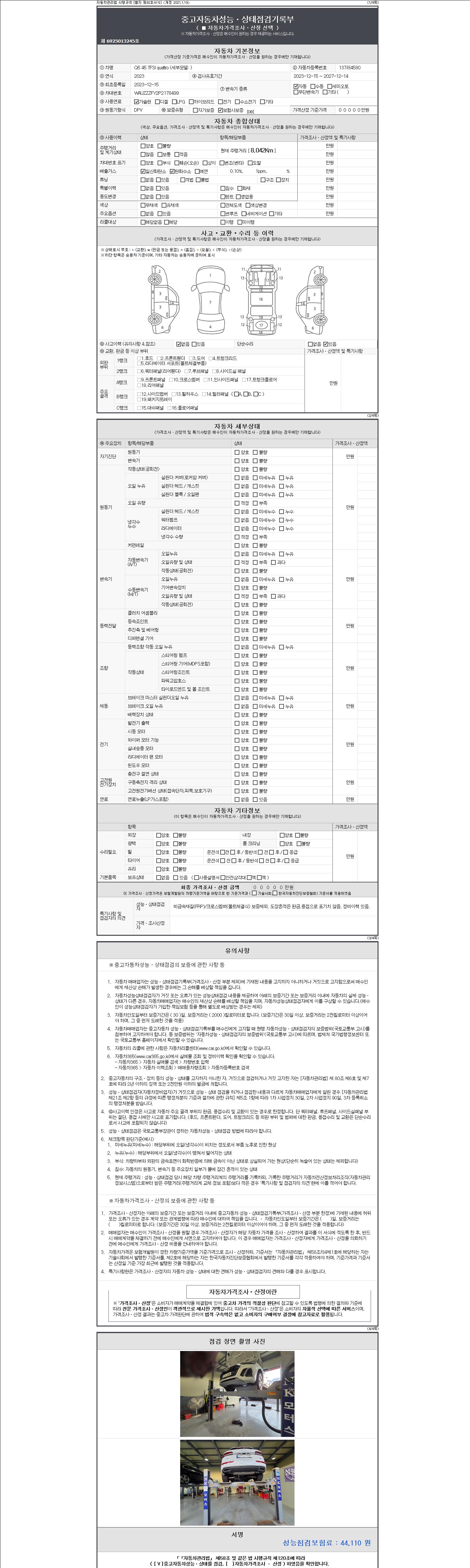 - 2. 차량 등록증이나 성능점검지 등을 상담자에게 요청및 확인하시고 사전에 미리 점검 하시기를 권유드립니다.