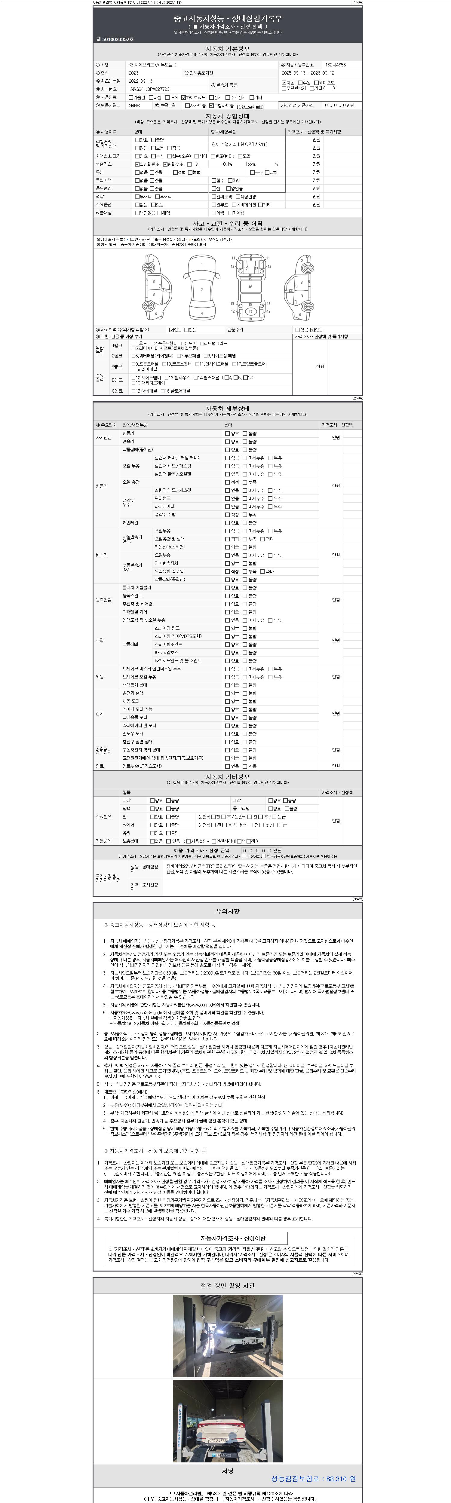 • 2. 차량 등록증이나 성능점검지 등을 상담자에게 요청및 확인하시고 사전에 미리 점검 하시기를 권유드립니다.