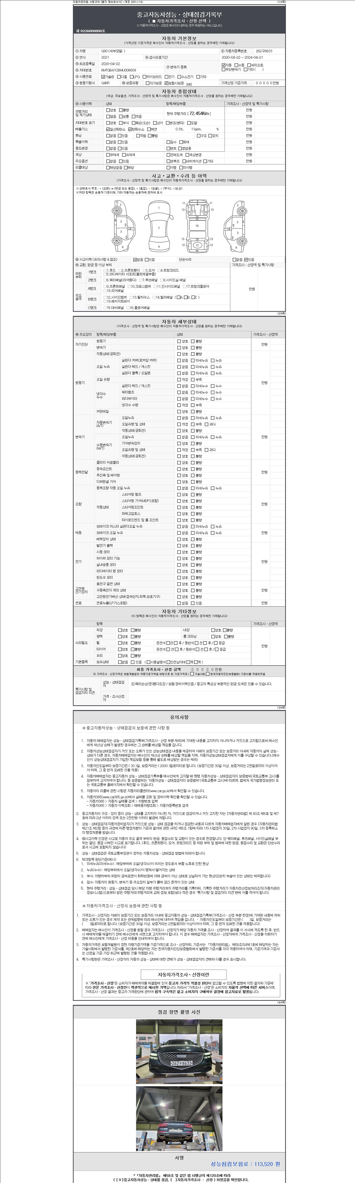 | 주행거리 | 72,454 km | 차량번호 | 262구8633 | 사고유무 | 성능기록부 참조 | 제시번호 | 제 2147483647 호 |