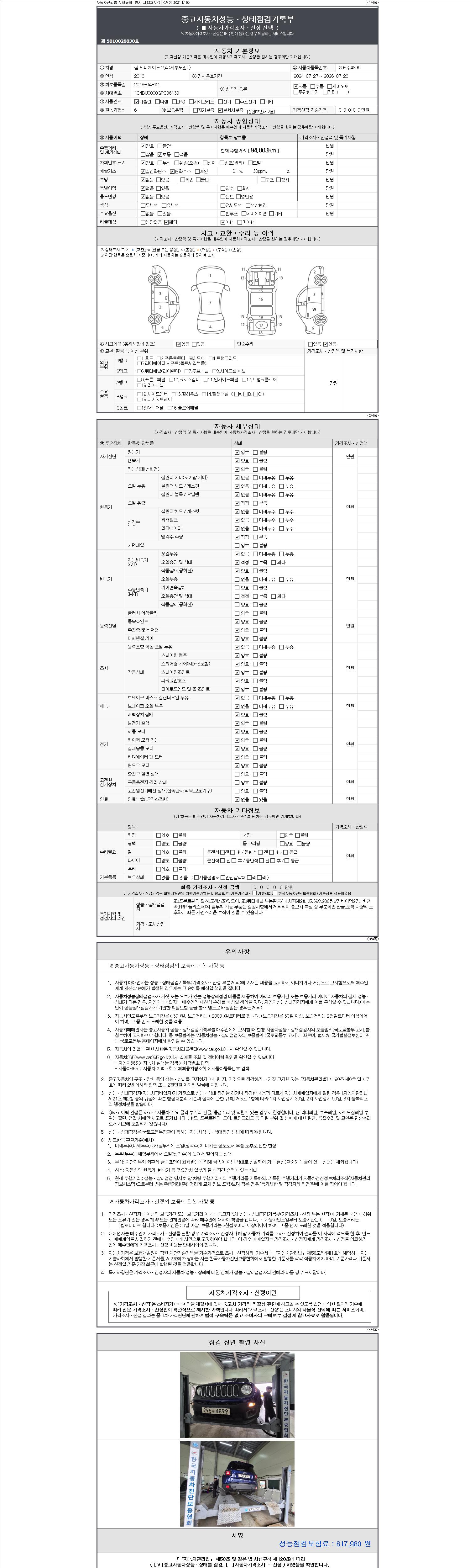 | 주행거리 | 94,796 km | 차량번호 | 295수4899 | 사고유무 | 성능기록부 참조 | 제시번호 | 제 2147483647 호 |