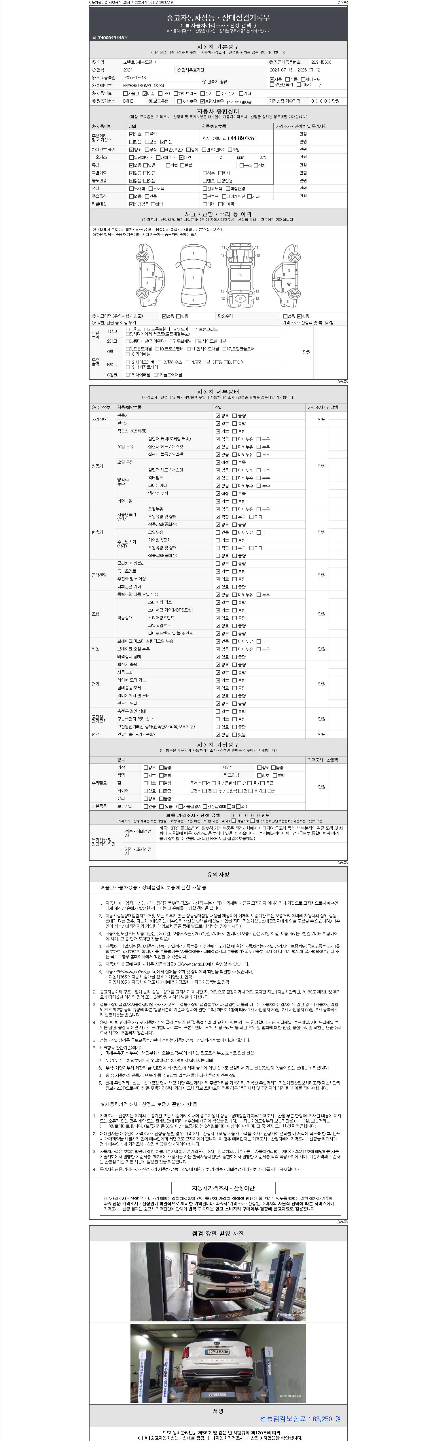 | 주행거리 | 44,897 km | 차량번호 | 229나5306 | 사고유무 | 성능기록부 참조 | 제시번호 | 제 2147483647 호 |