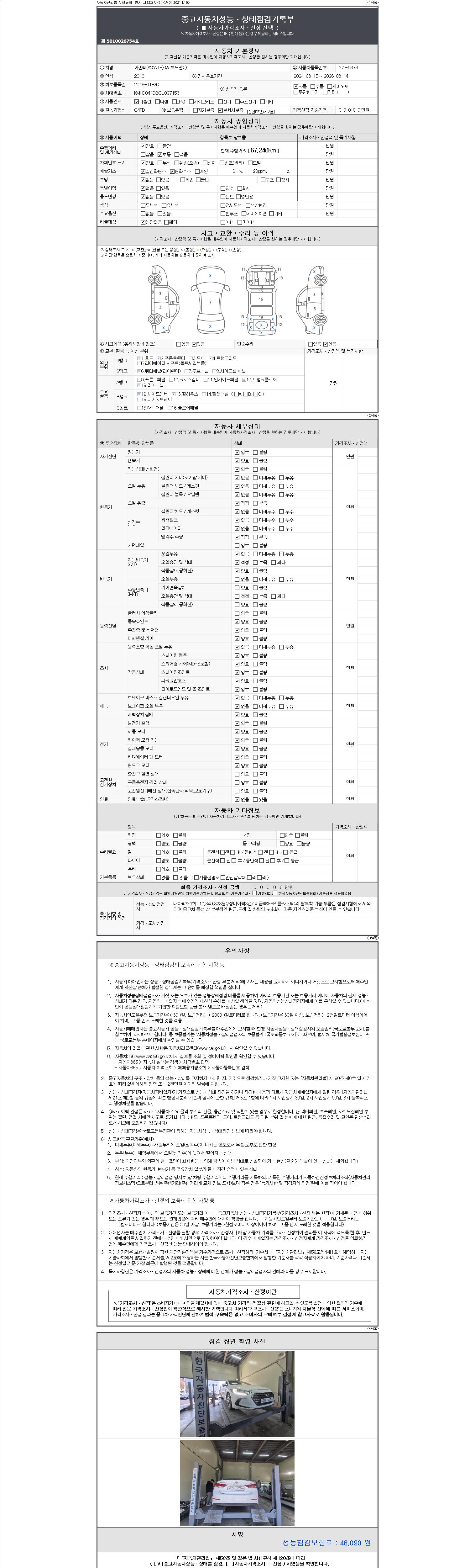 | 주행거리 | 67,238 km | 차량번호 | 37노0676 | 사고유무 | 성능기록부 참조 | 제시번호 | 제 2147483647 호 |