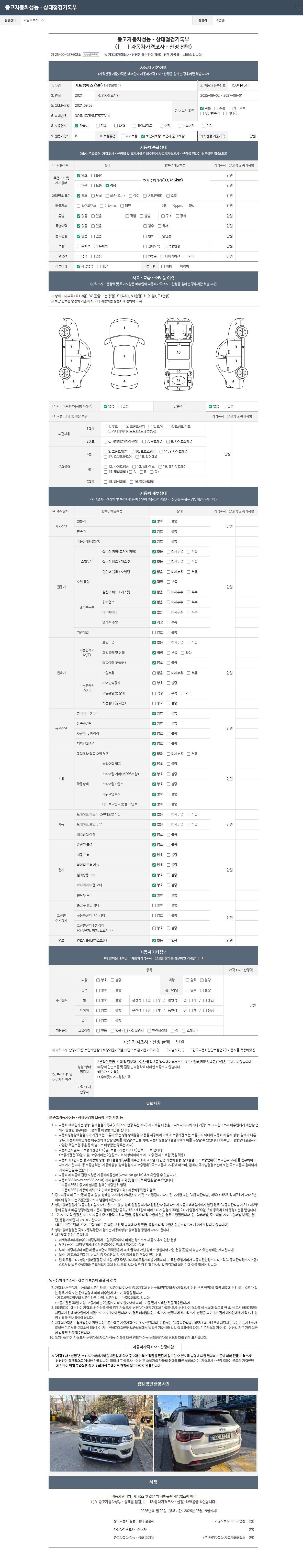 - 2. 차량 등록증이나 성능점검지 등을 상담자에게 요청및 확인하시고 사전에 미리 점검 하시기를 권유드립니다.
