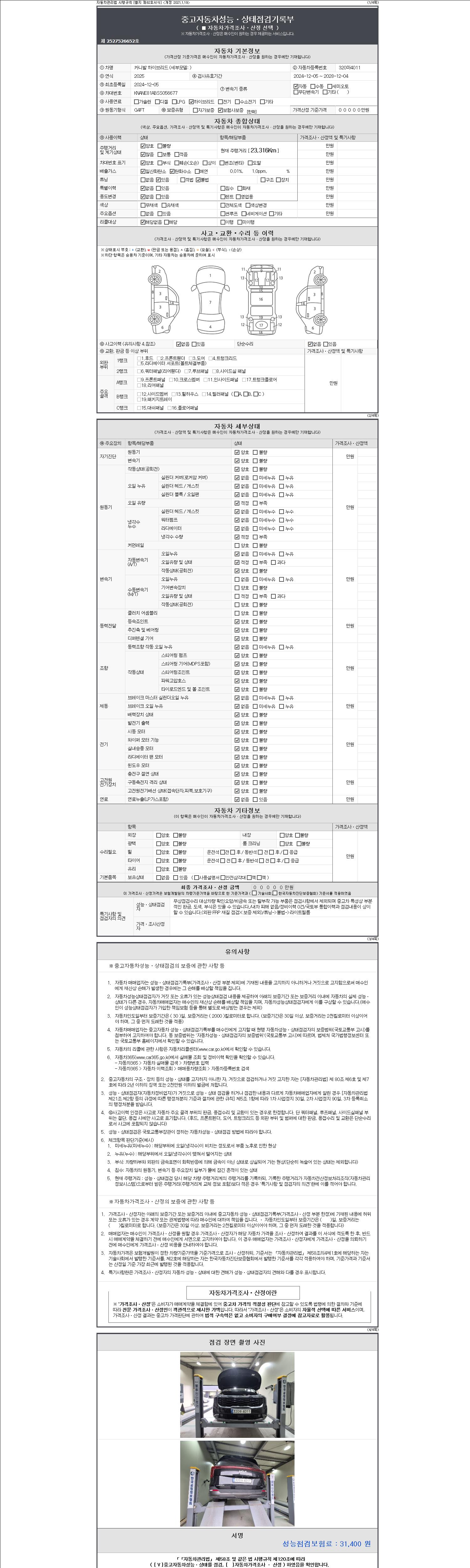 | 주행거리 | 23,316 km | 차량번호 | 320마4011 | 사고유무 | 성능기록부 참조 | 제시번호 | 제 2147483647 호 |