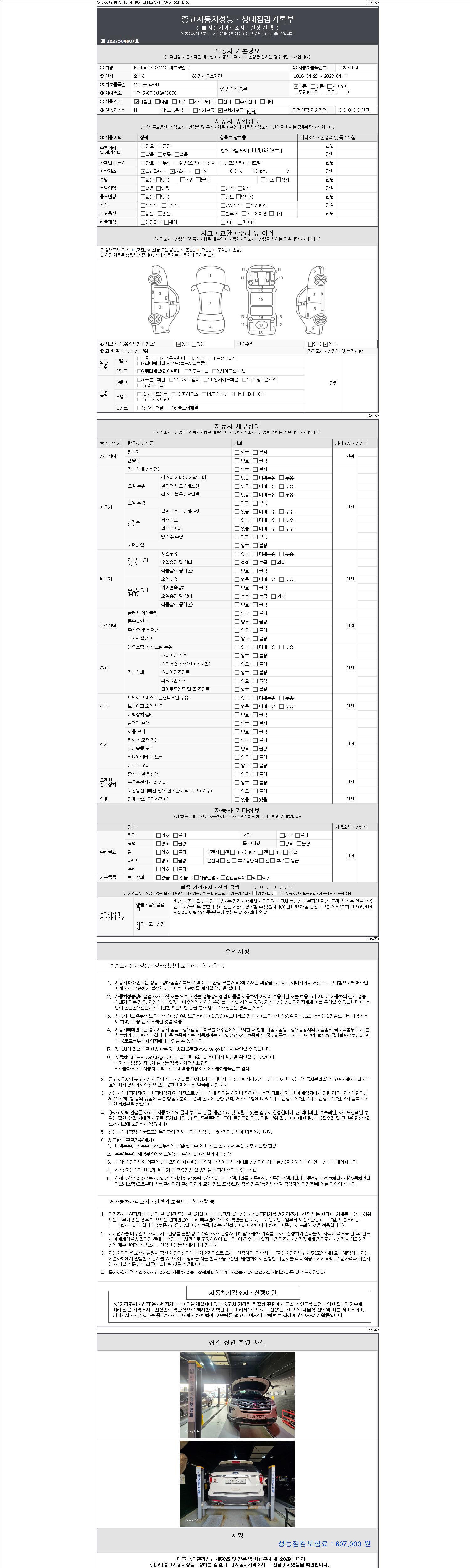 | 주행거리 | 114,626 km | 차량번호 | 36어6904 | 사고유무 | 성능기록부 참조 | 제시번호 | 제 2147483647 호 |