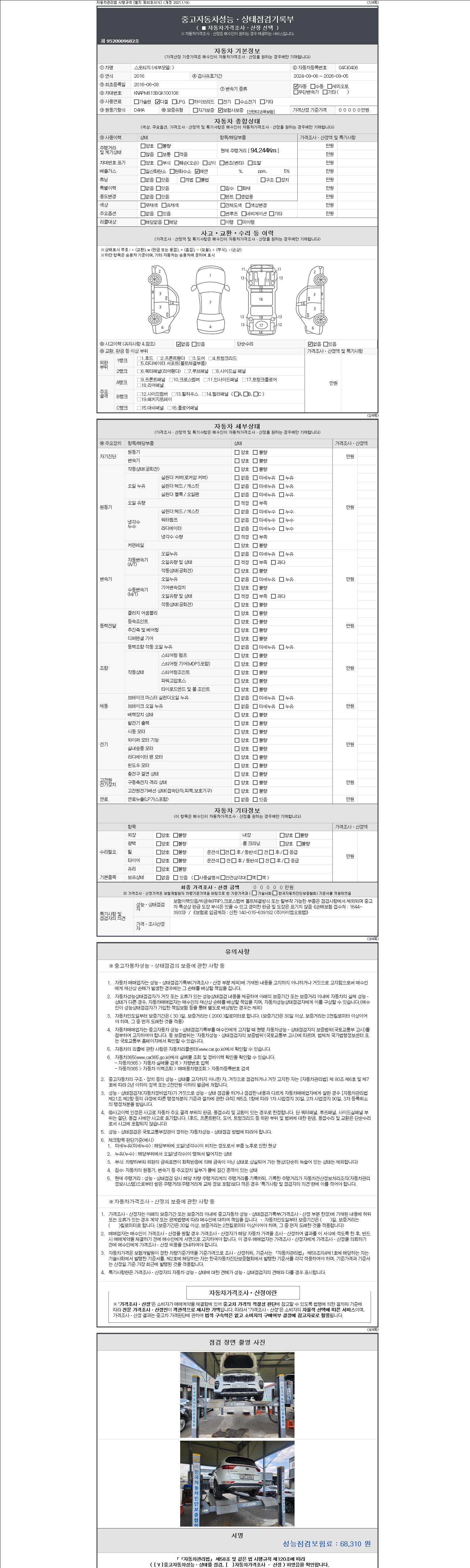 | 주행거리 | 94,244 km | 차량번호 | 04다0406 | 사고유무 | 성능기록부 참조 | 제시번호 | 제 2147483647 호 |